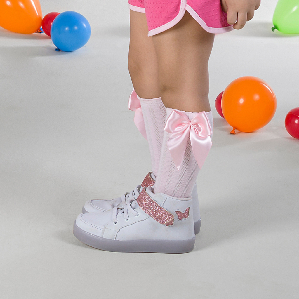 Meia 3/4 Infantil Festa Laço Delicada Cano Longo Menina Divertida Feminina Promoção