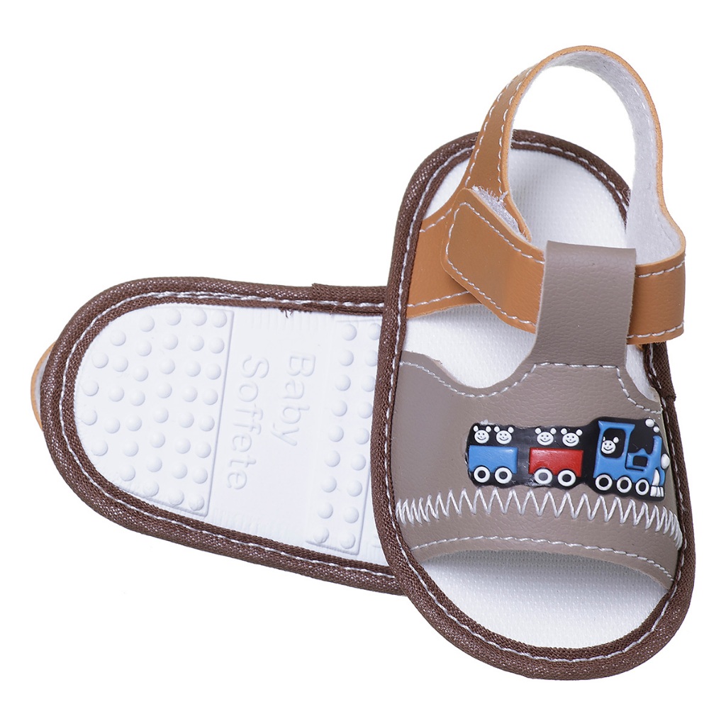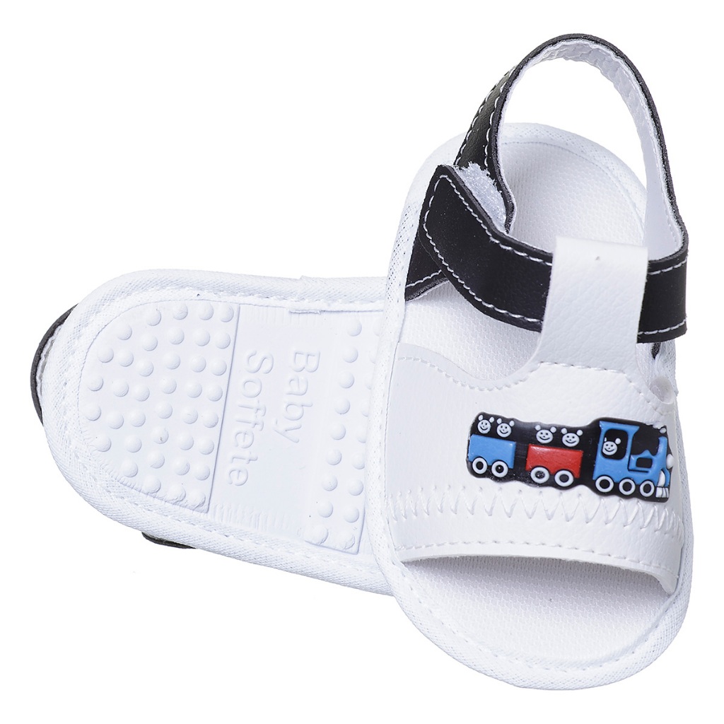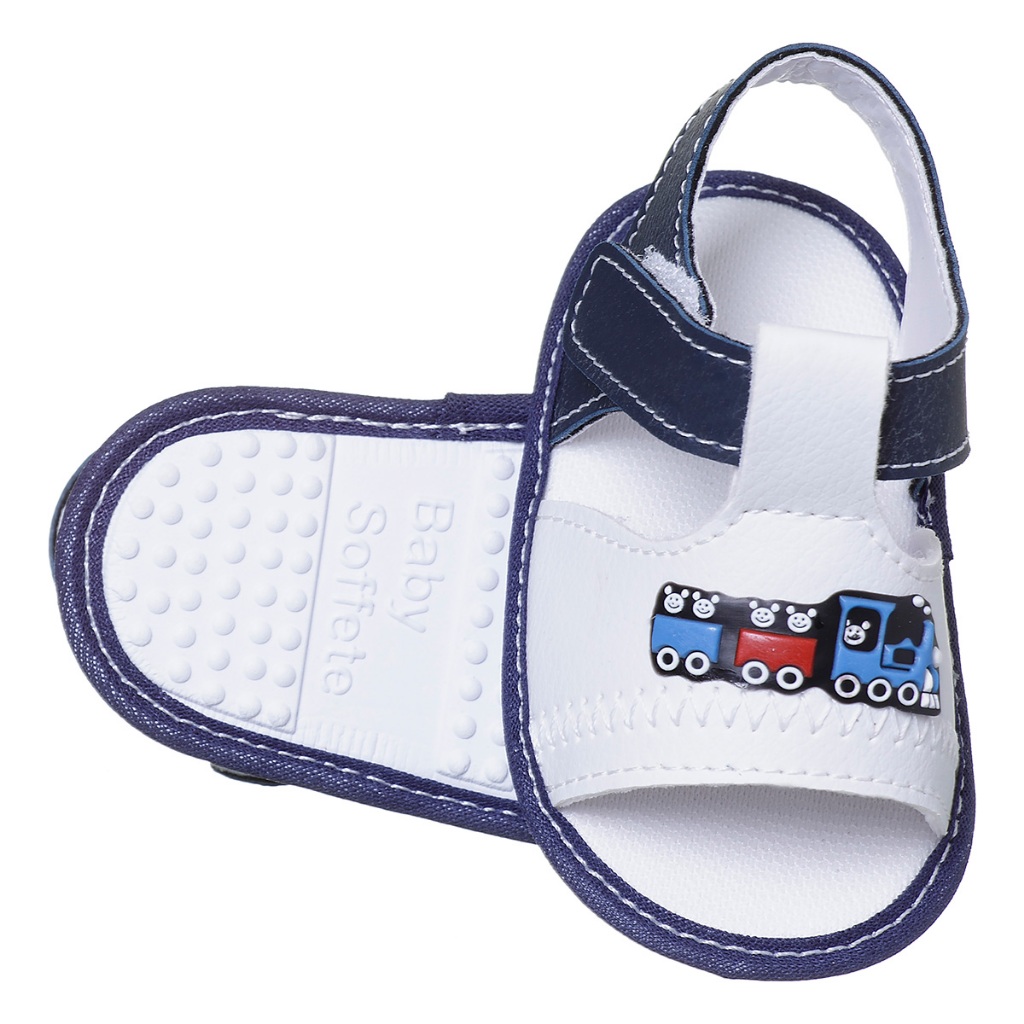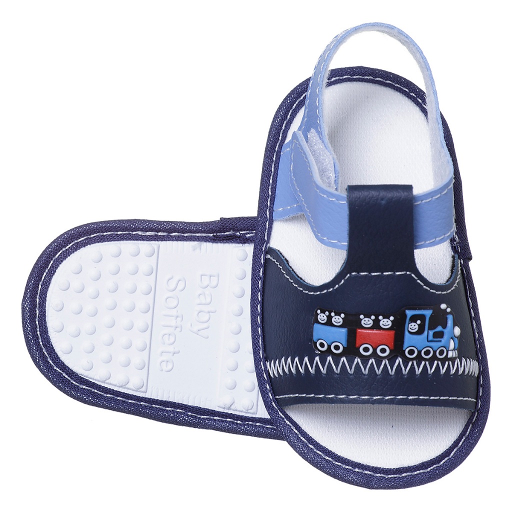 Sandália Delicada Baby Menino Trenzinho Infantil Sem Sola Verão Promoção Bebezinho Antialérgico