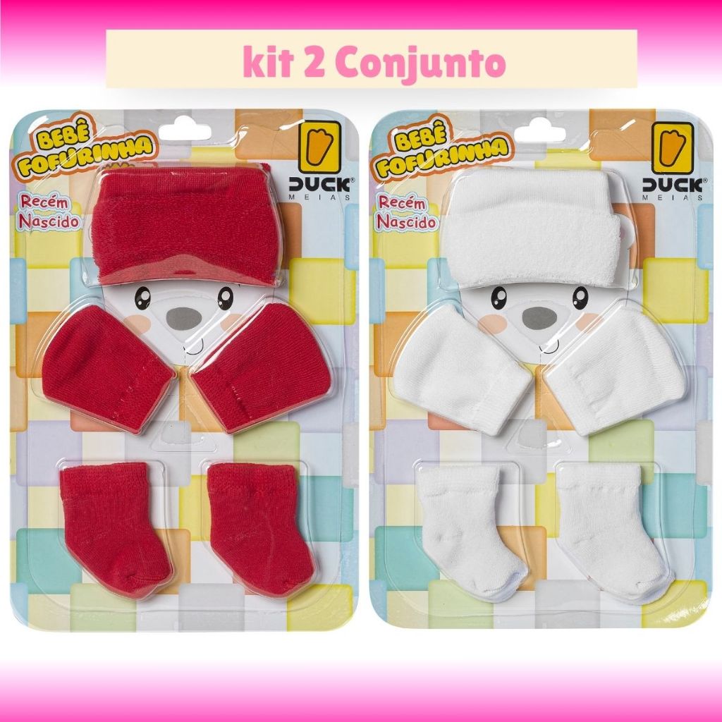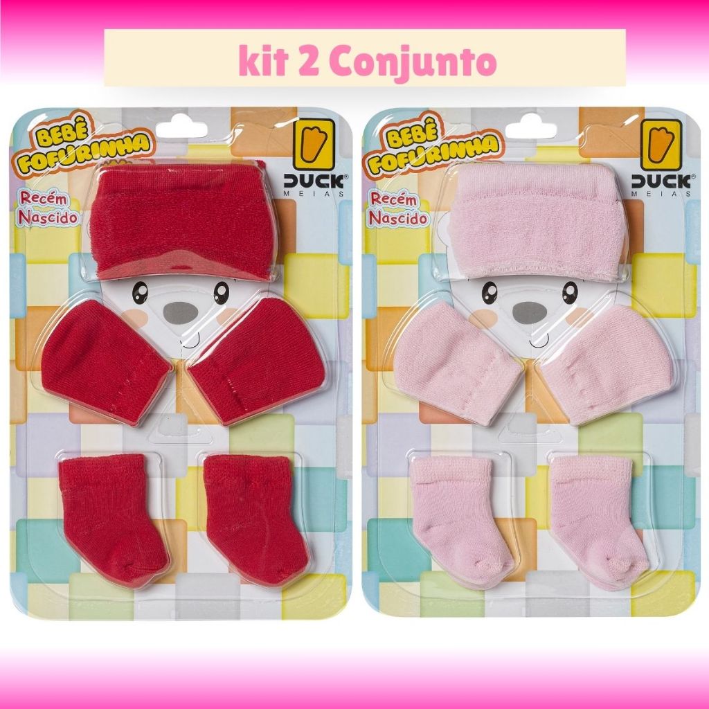Kit 2 Conjunto Bebe Touca Meia Luva Recém Nascido Menina Algodão Confortável Promoção