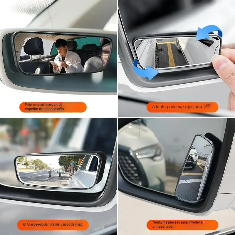 Espelho Retrovisor Carro Auxiliar Externo Moto Universal Olho de Boi Fixo Móvel inversão de ponto cego ajustável