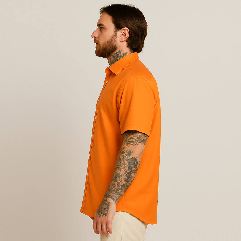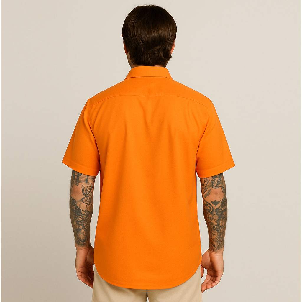Camisa Masculina De Botão Manga Curta Laranja Neon Viscose