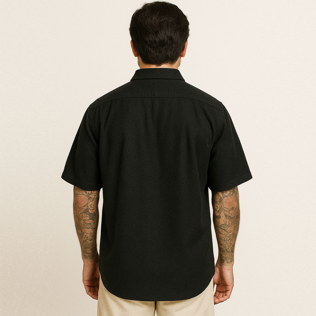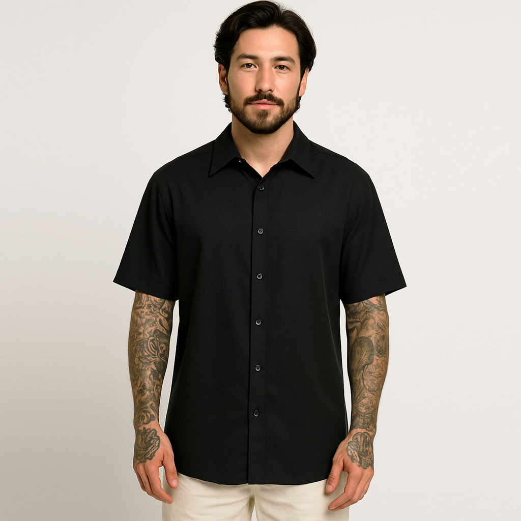 Camisa Social Masculina De Botão Manga Curta Preta Viscose
