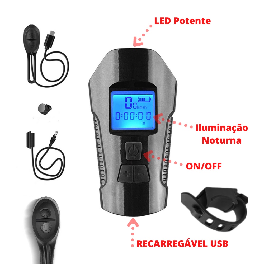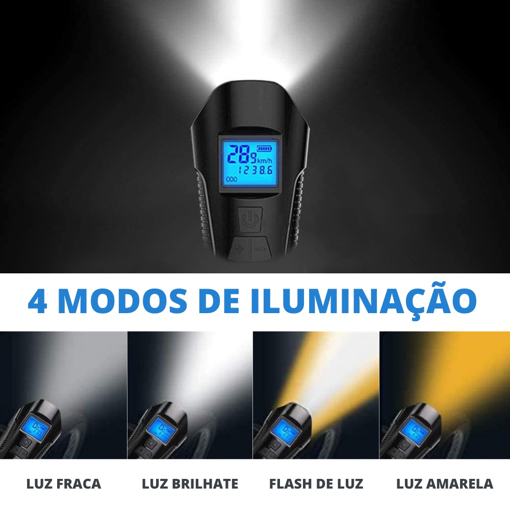 Kit Farol Bike Led T6 Buzina E Velocimetro + Pisca Traseiro