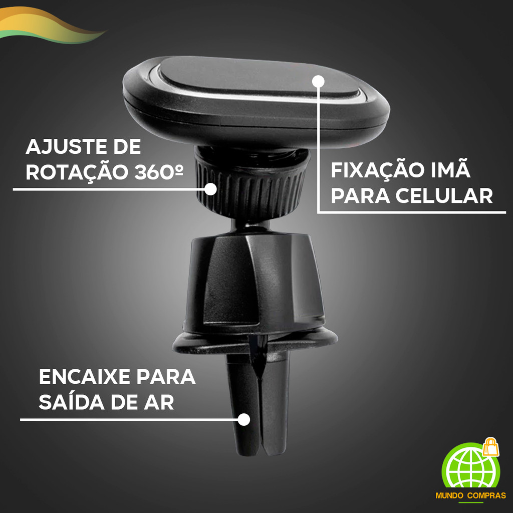 Suporte Magnético 360º Para Celular Na Saída De Ar Do Carro