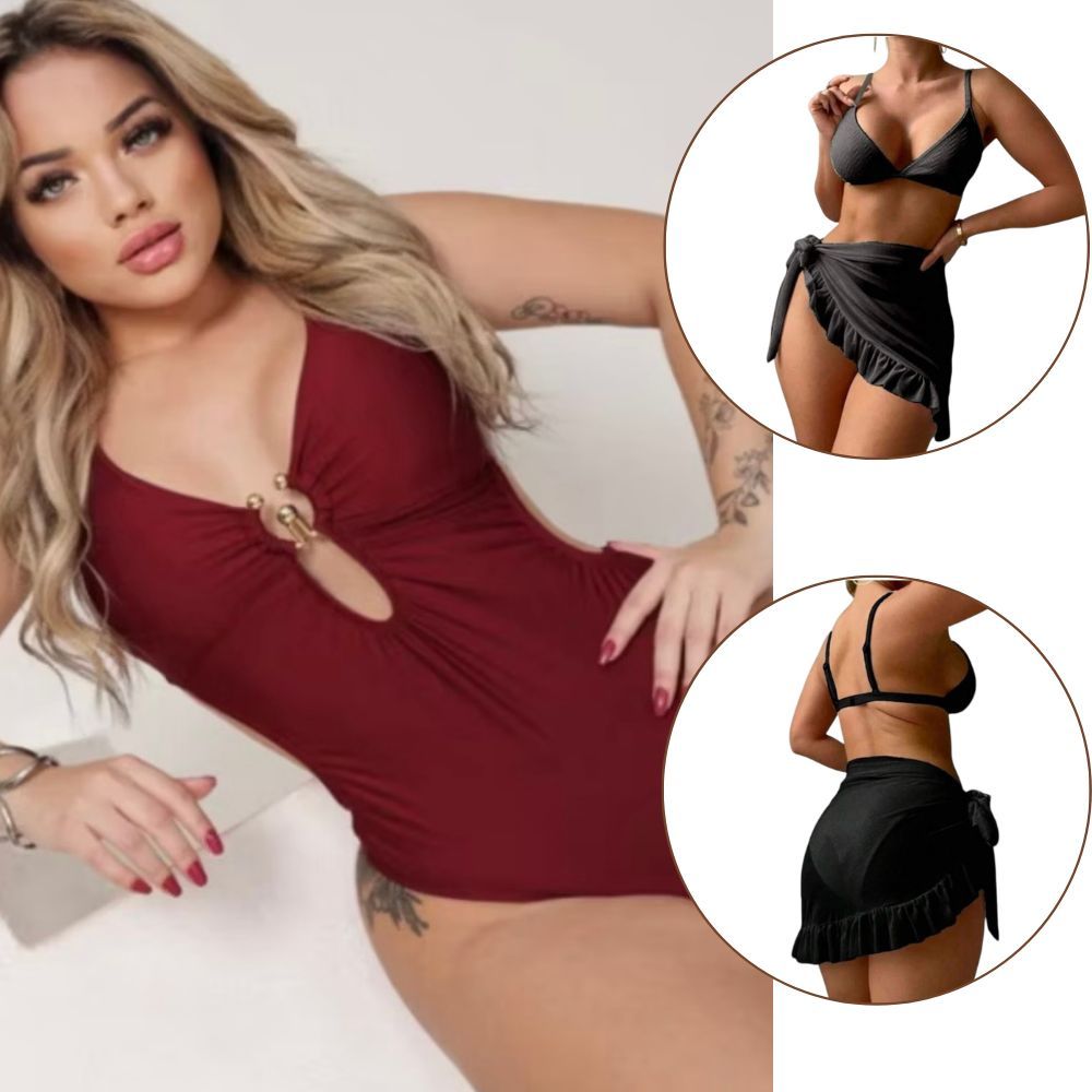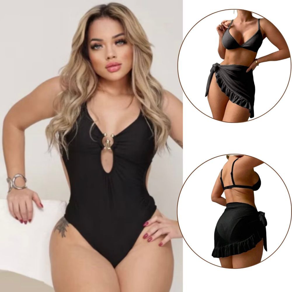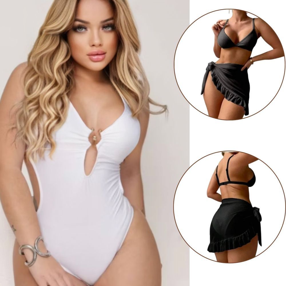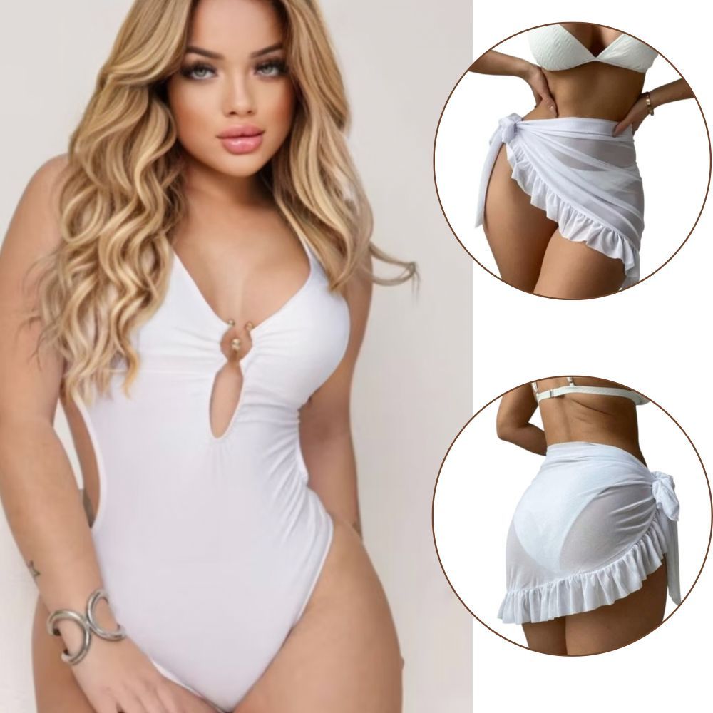 Kit 2 Peças Maiô Com Bojo E Saída De Praia Pareo Babado Conjunto Perfeito Verão Feminino Maiô Biquini Cintura Alta