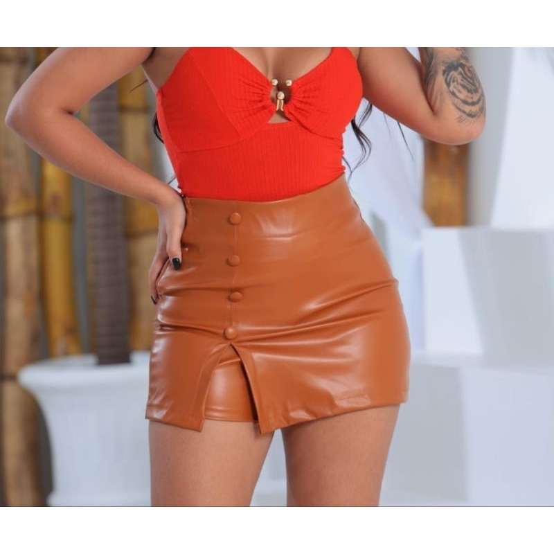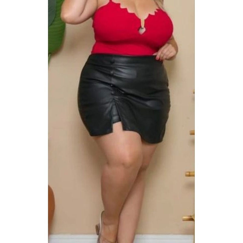 Short saia plusize em courino
