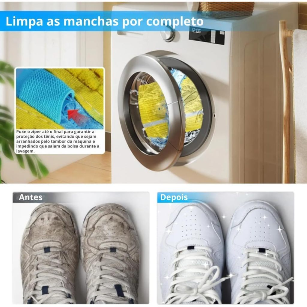 Kit 2 Saco de Lavar Tênis Sapato Malha Lavanderia Anti Deformação Saco de Lavagem Viagem Armazenamento