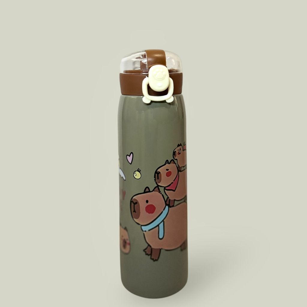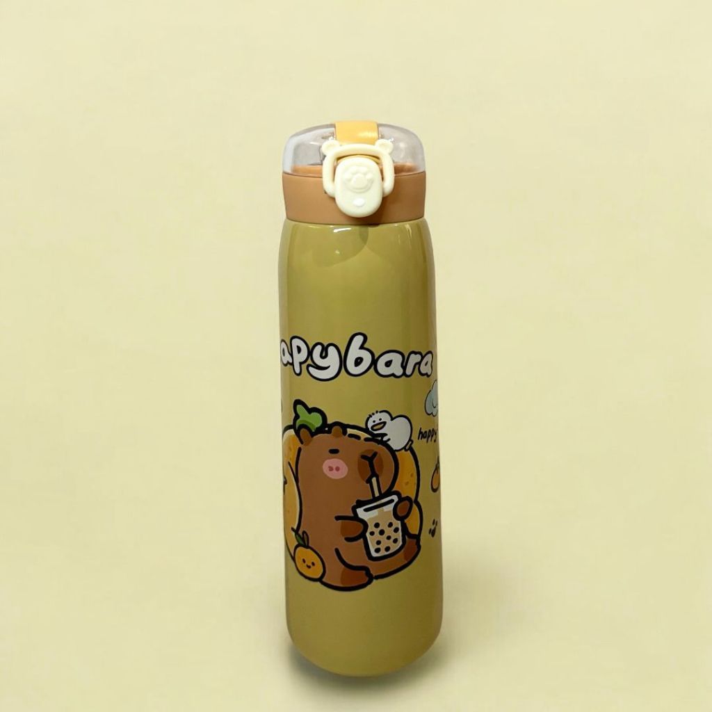 Garrafa Térmica Aço Inox Estampa Capivara Capybara Escolar Infantil com Canudo E Trava 500ml