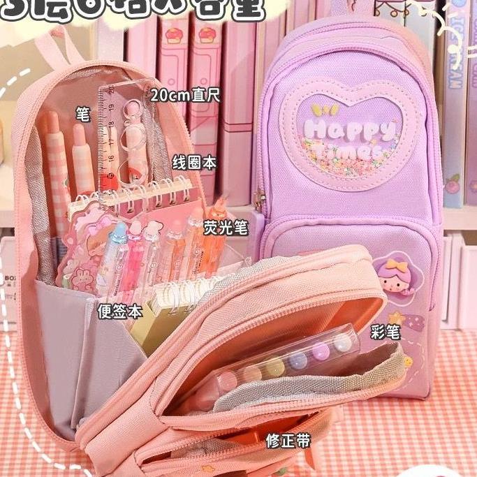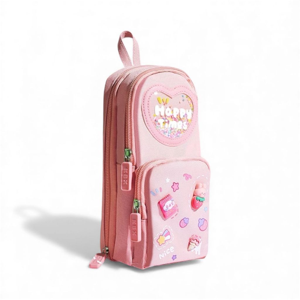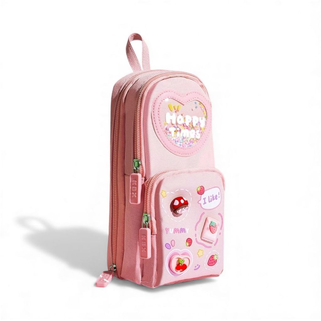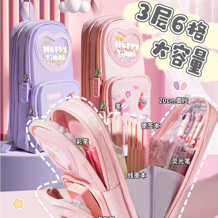 Estojo Escolar de Lápis de Tecido Com Apliques 3D Alto Relevo Com Três Divisórias Portátil Feminino