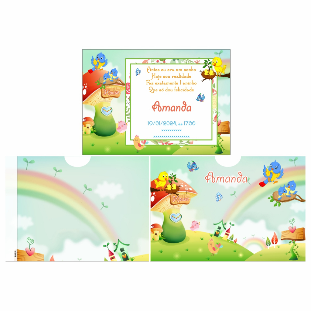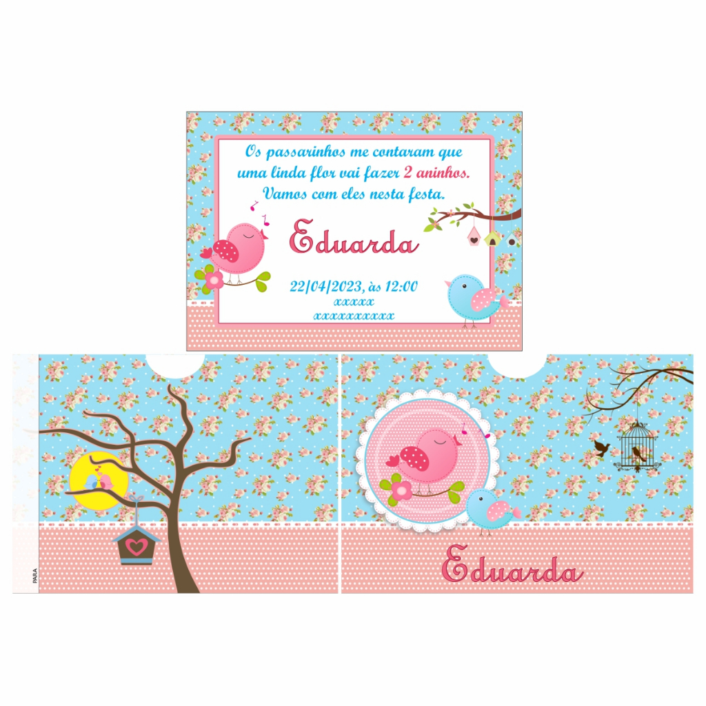 Convite Aniversário Passarinho Mais Envelope Passarinho Personalizados