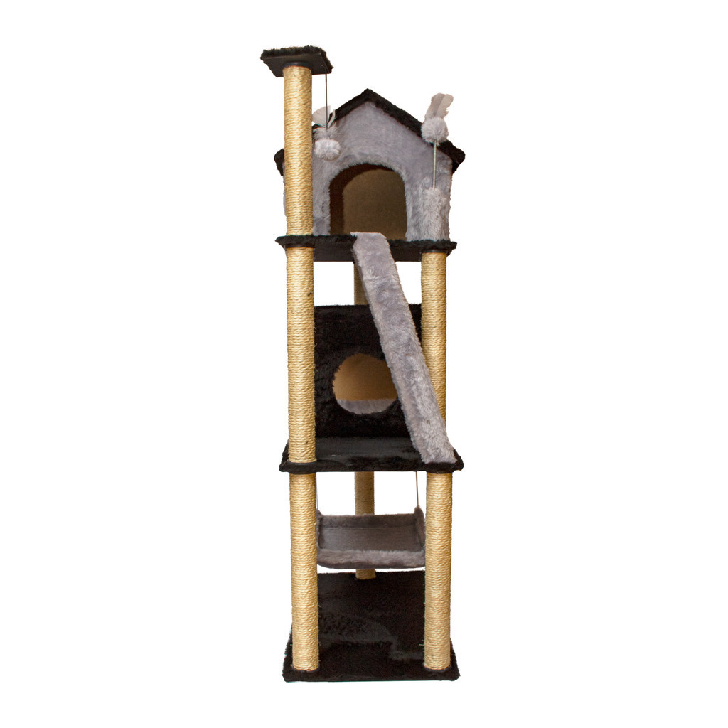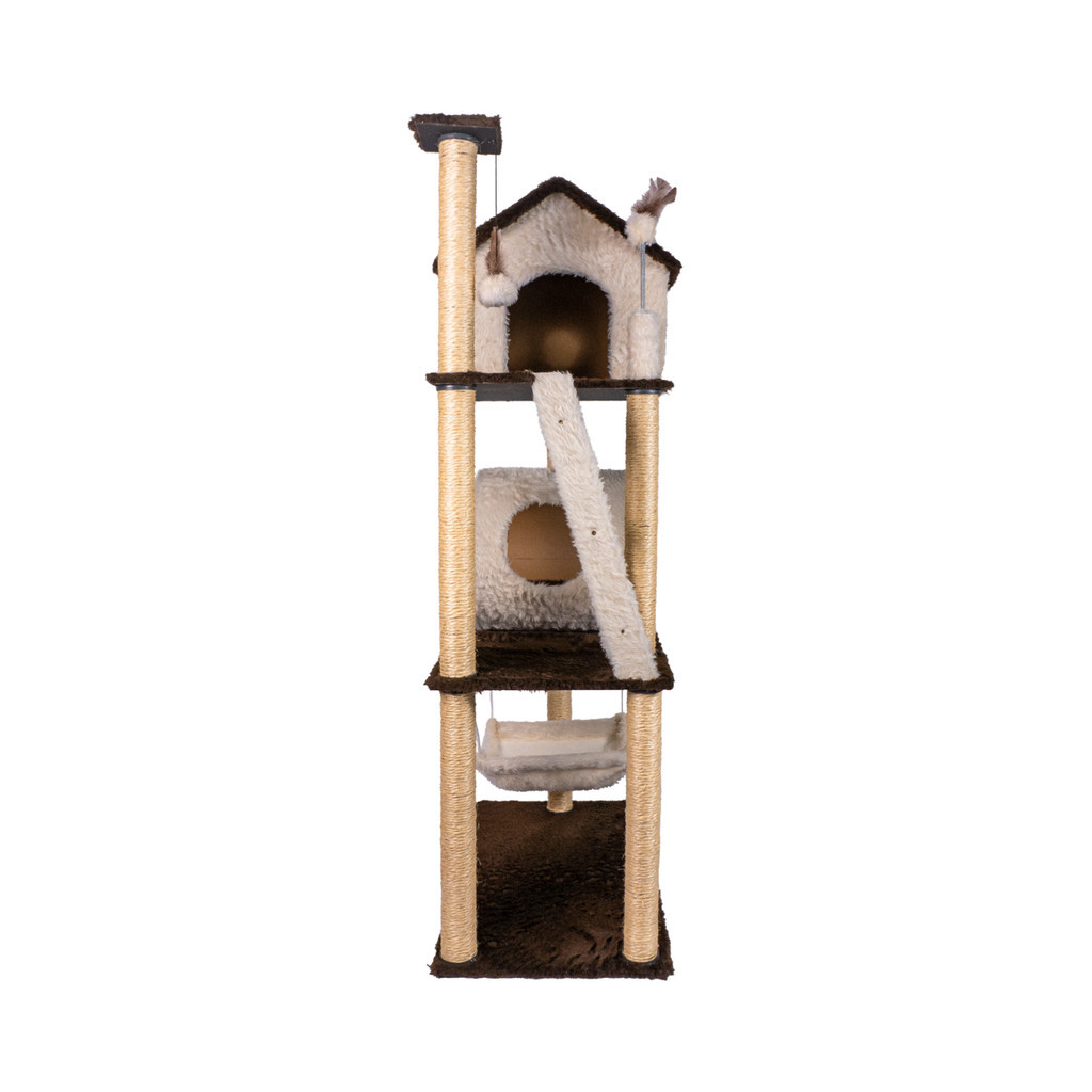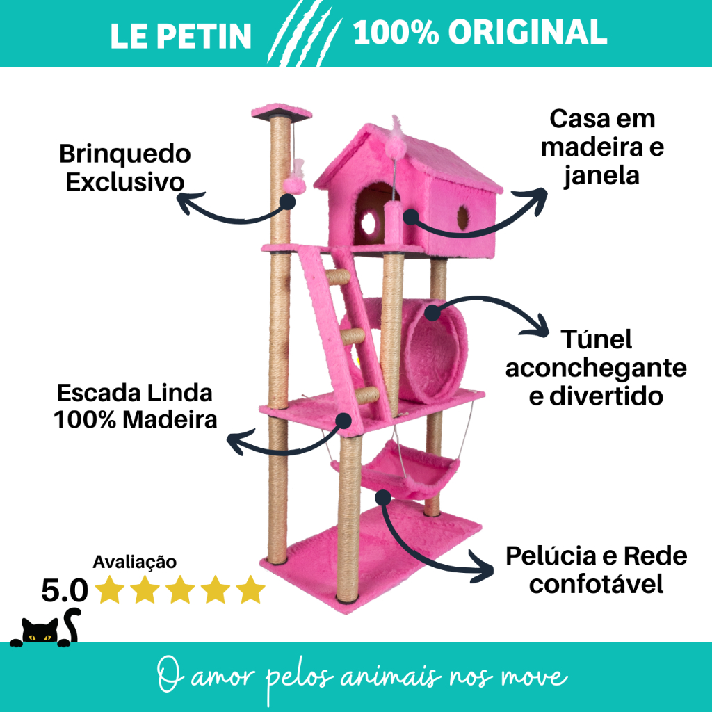 Arranhador Gato Casa Três Andares com Rede e Escada e Túnel Exclusivo
