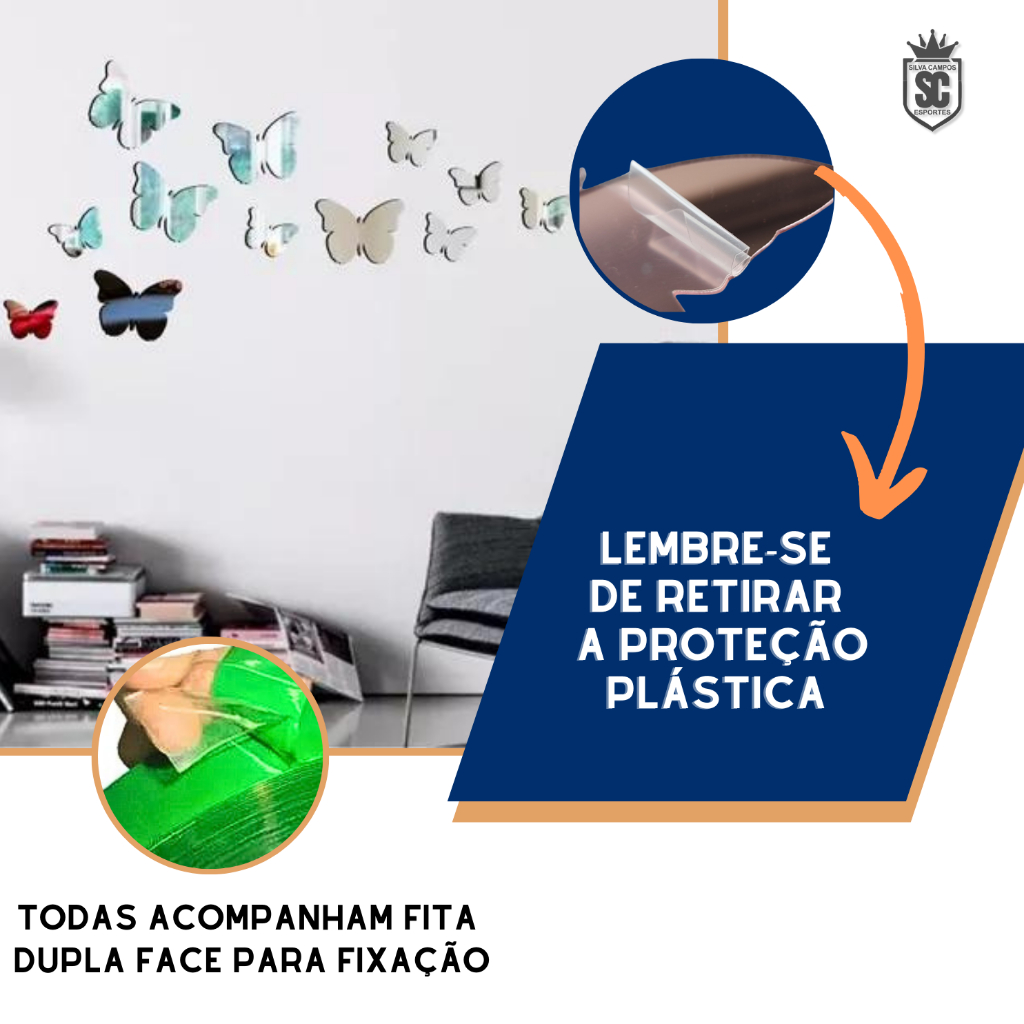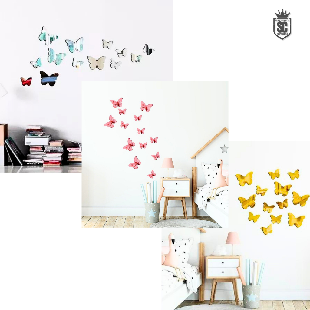 Kit 13 Borboletas Espelhadas Decoração Acrílico Sala Quarto Ambiente Encante seu lar