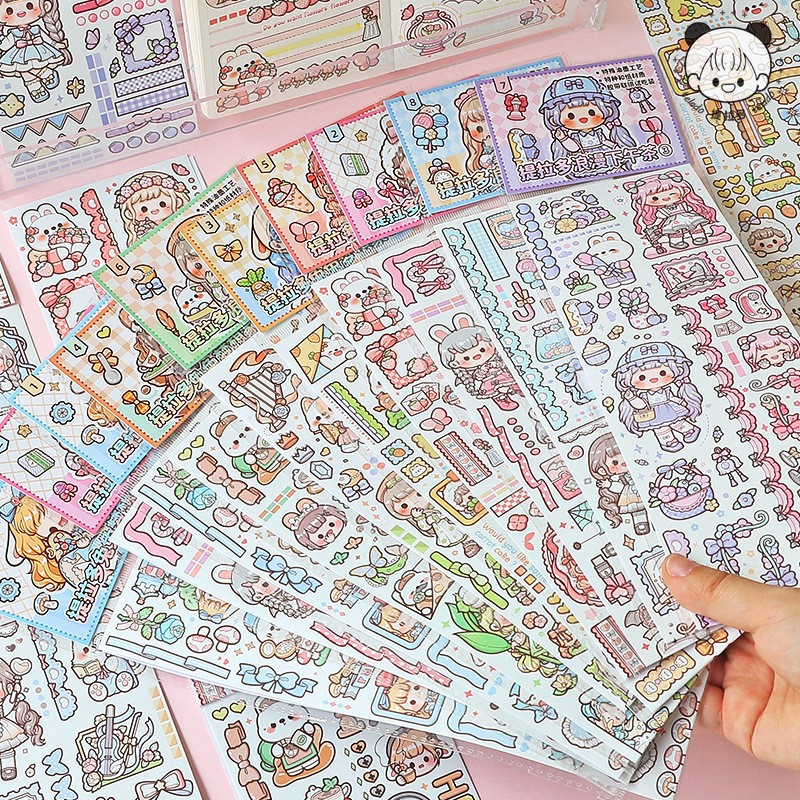 Cartela de adesivos menininhas Telado fofa kawaii