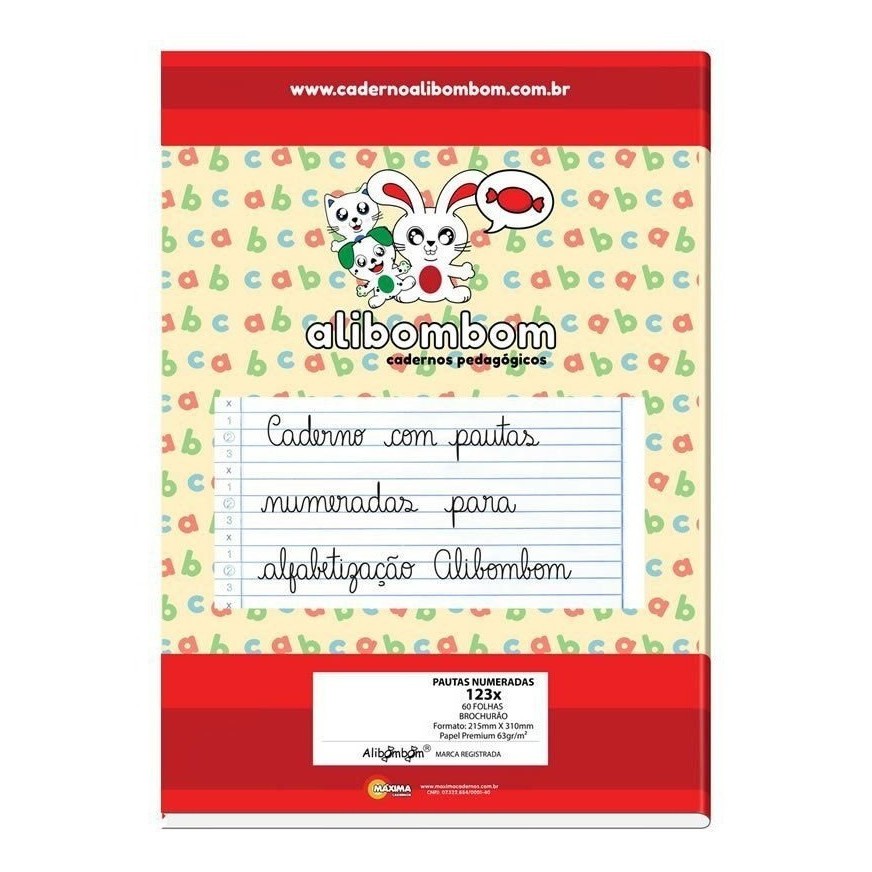 Cadernos Brochurão Alibombom Vermelho - Capa Dura 123X 80 folhas - Kit com 05 unidades