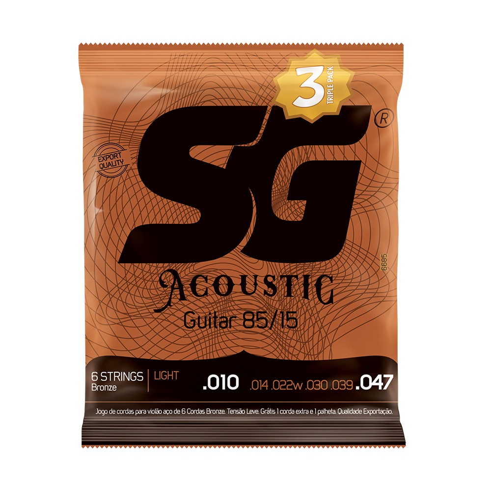 Kit 6 Encordoamento SG Violão Aço 010 Bronze 85/15 - Light