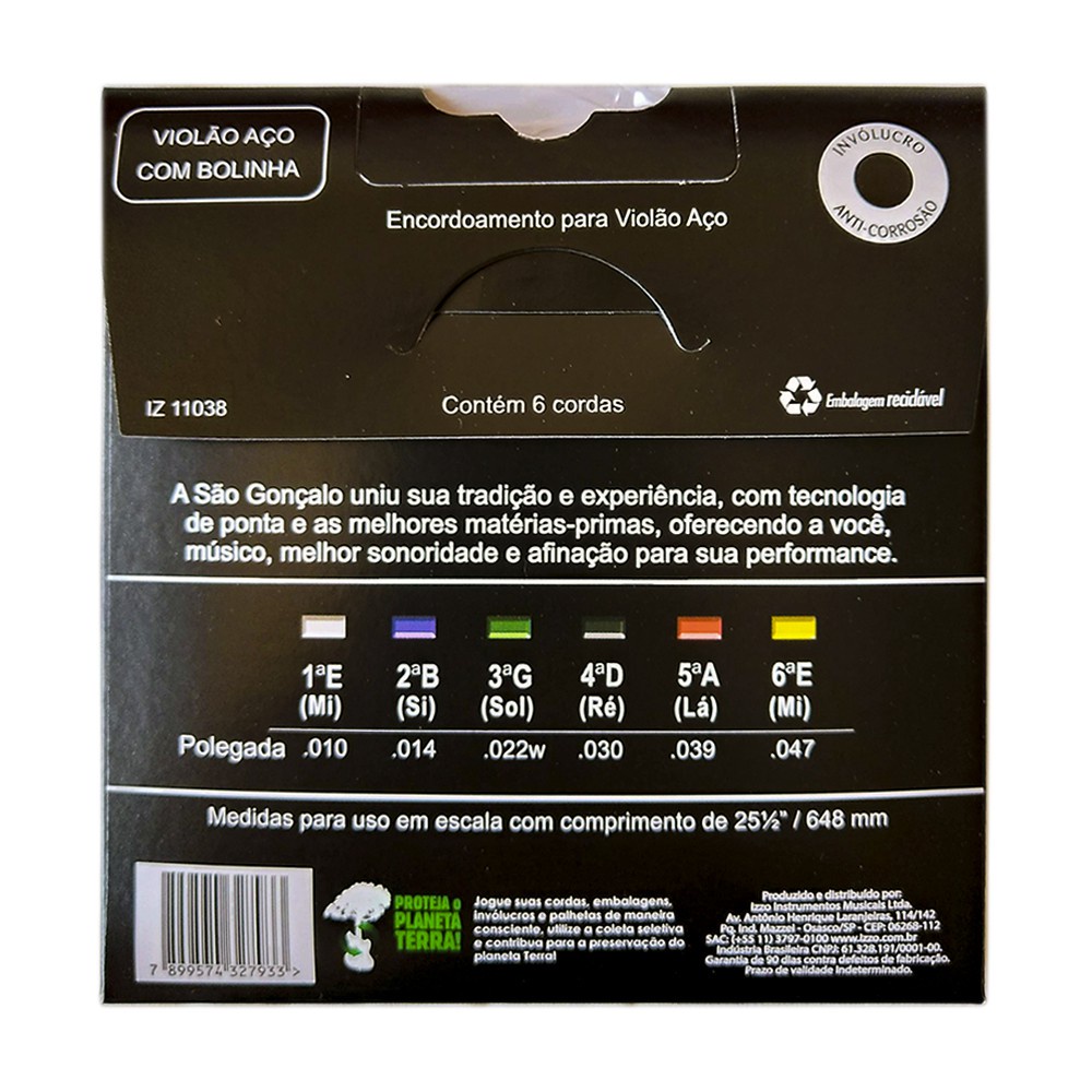 Encordoamento São Gonçalo 010 Leve com Bolinha para Violão Aço