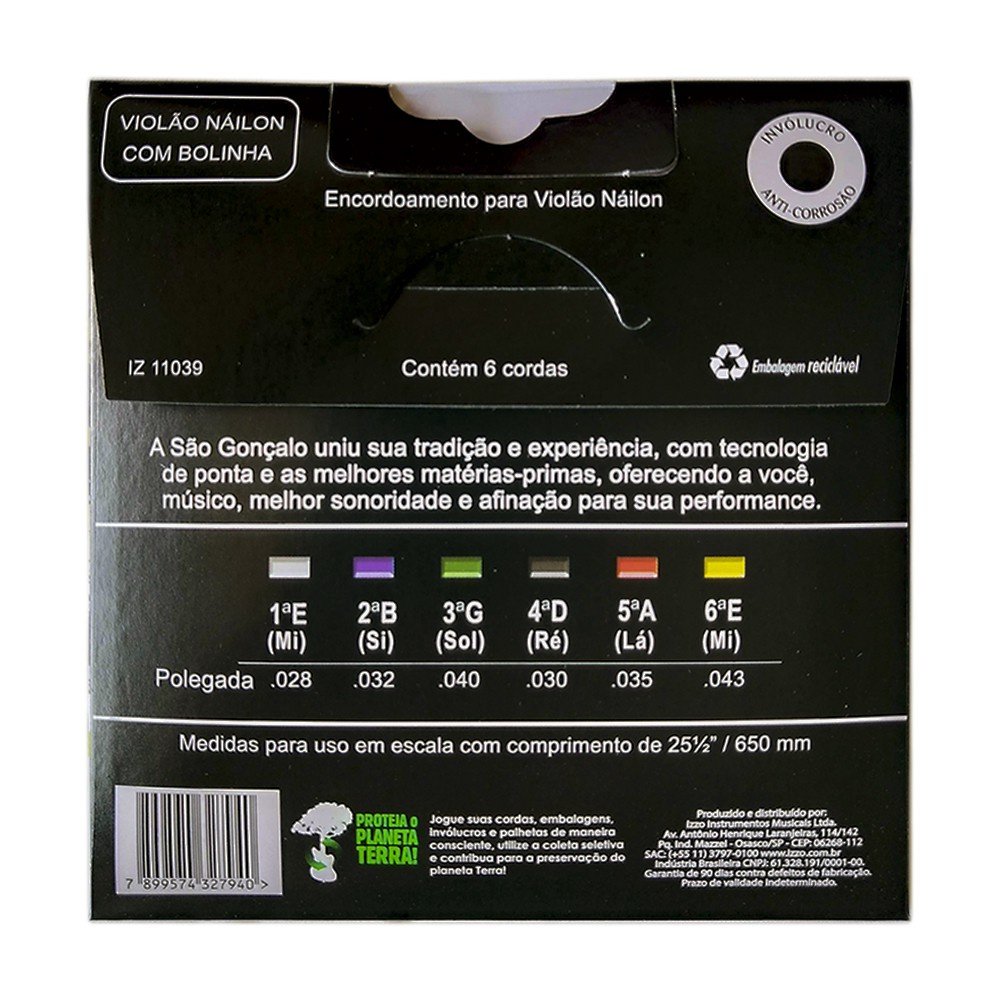 Encordoamento Violão Nylon Cristal Tensão Média com Bolinha