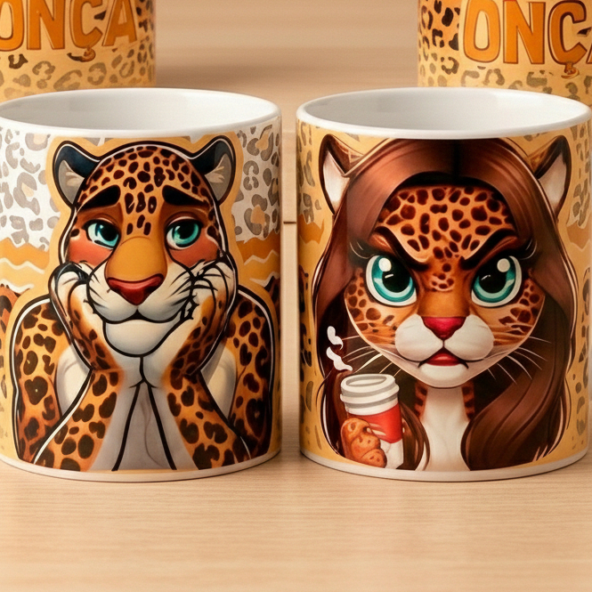 Caneca Personalizada Casal Porcelana Xícara Dona Onça