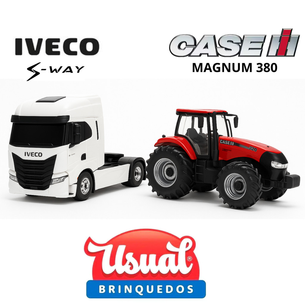 Brinquedo Caminhão Iveco Plataforma Com Trator Case - Usual Brinquedos