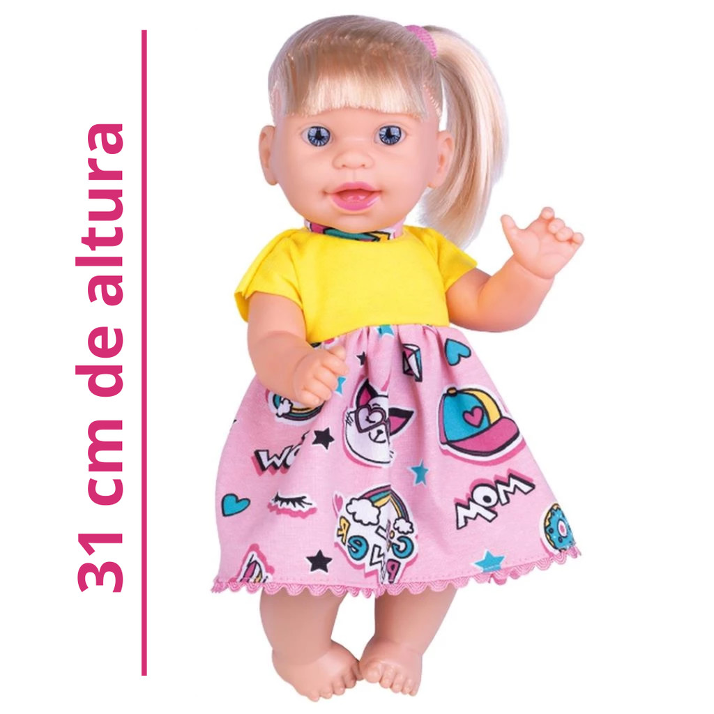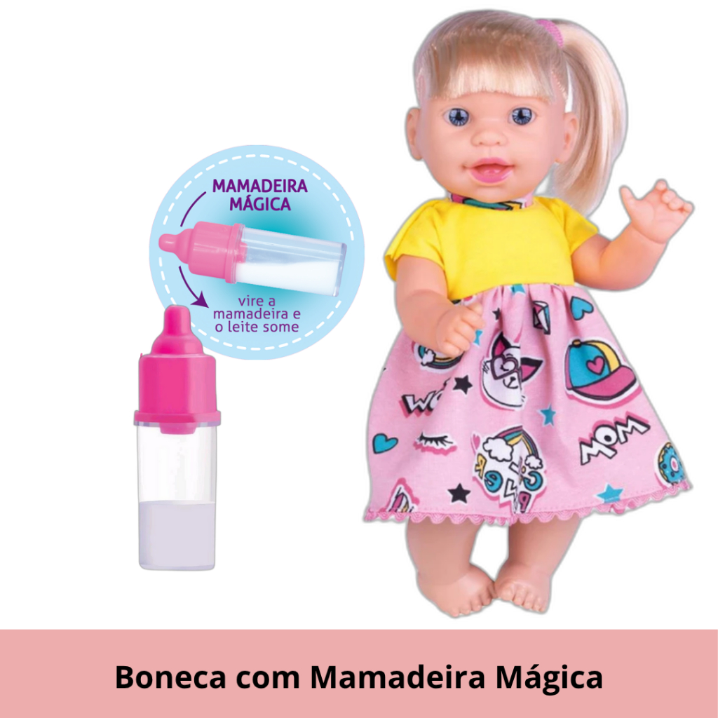 Boneca Bebê Eloah com Mamadeira Mágica e Acessórios De Cabelo