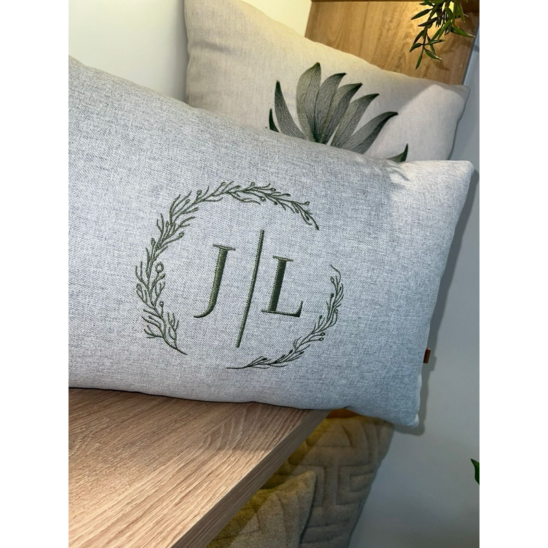 Almofada Baguete (01 UNIDADE) Rineira Moldura FLORAL com Enchimento Personalizada Para Cama Posta 50x30 Letras Inicial