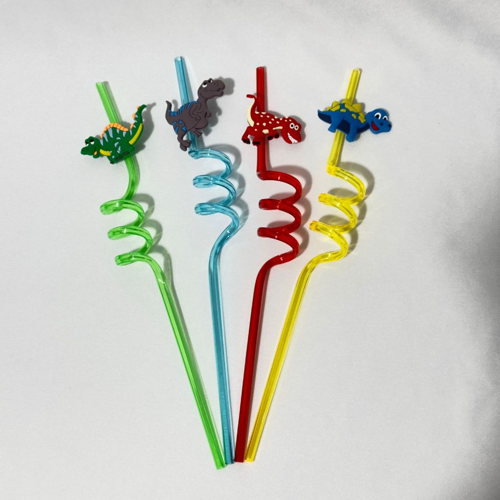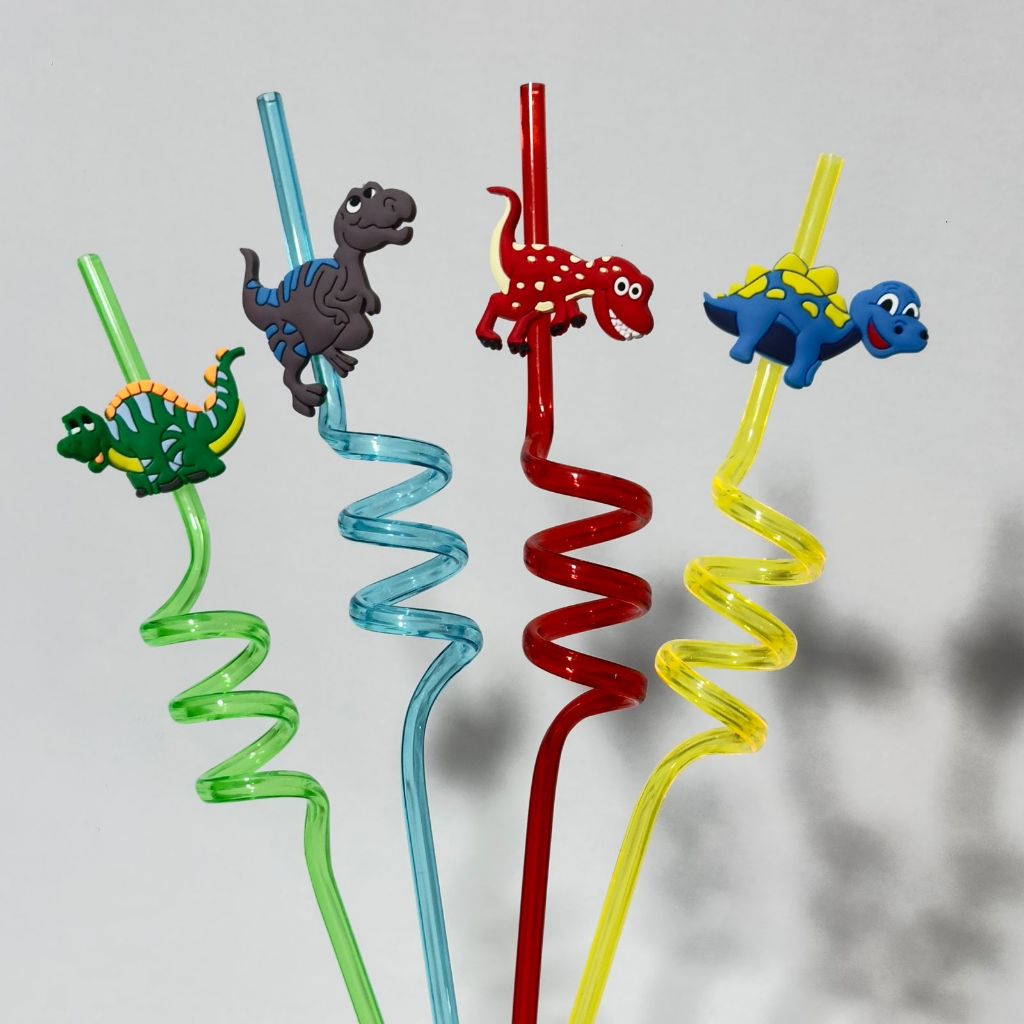 Kit 8/12/20 Canudos de Dinossauro Reutilizável Espiral Decoração Festa