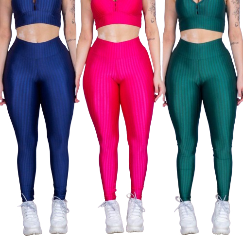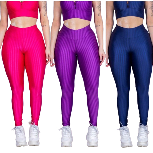 Kit 3 Calça Leg Legging 3D Feminina Academia Cintura Alta Levanta Bumbum