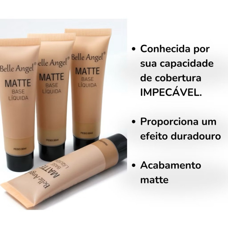 Belle Angel Base Liquida Matte cobertura perfeita cor 02 cor 05