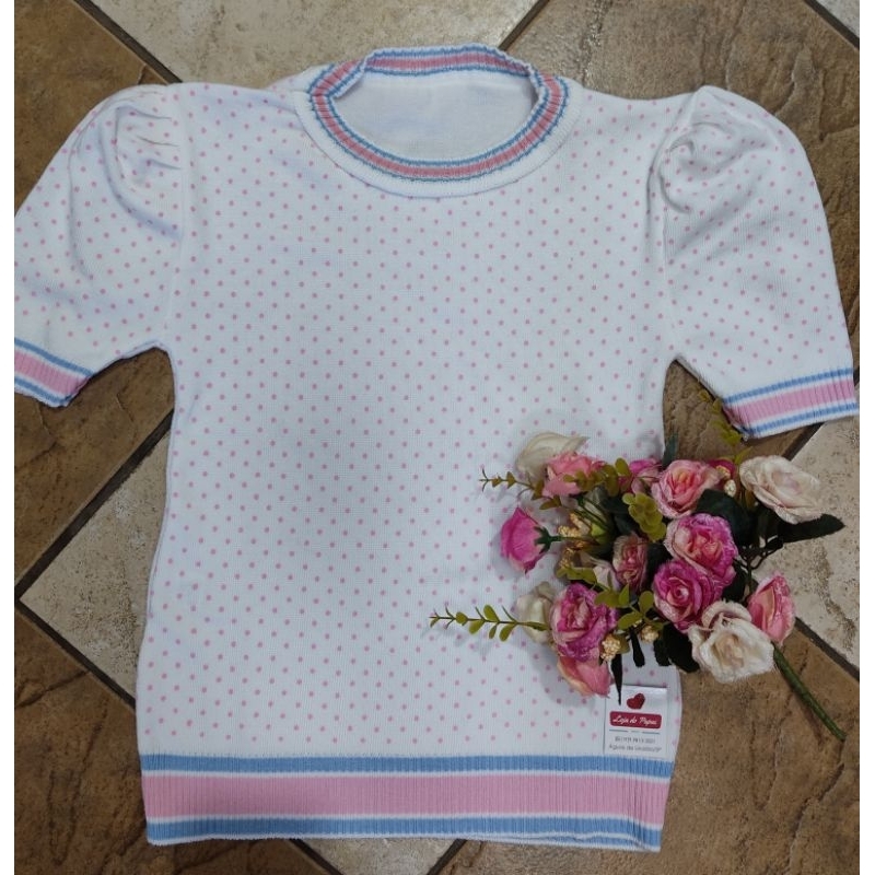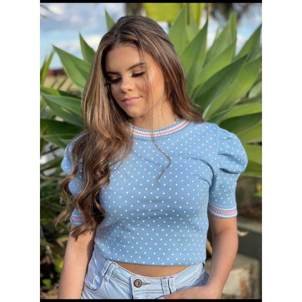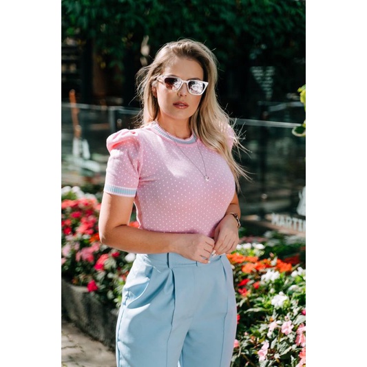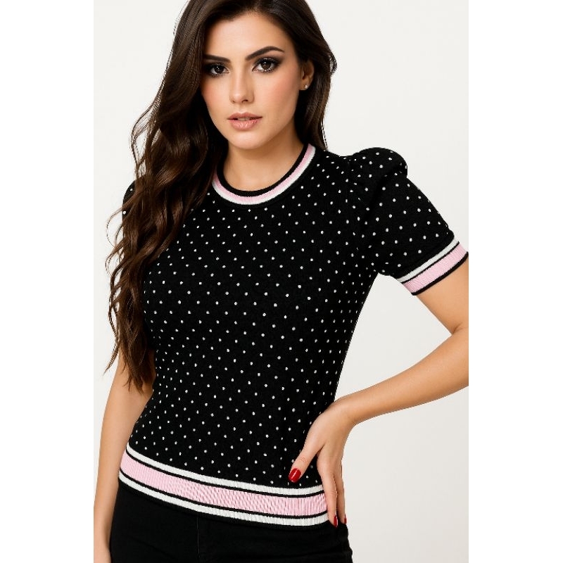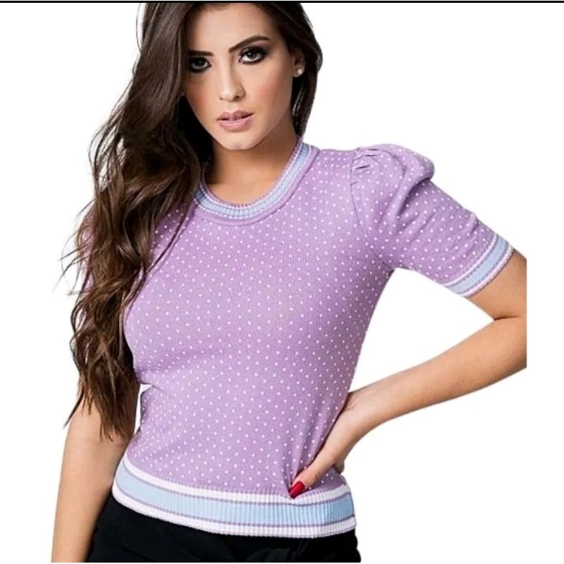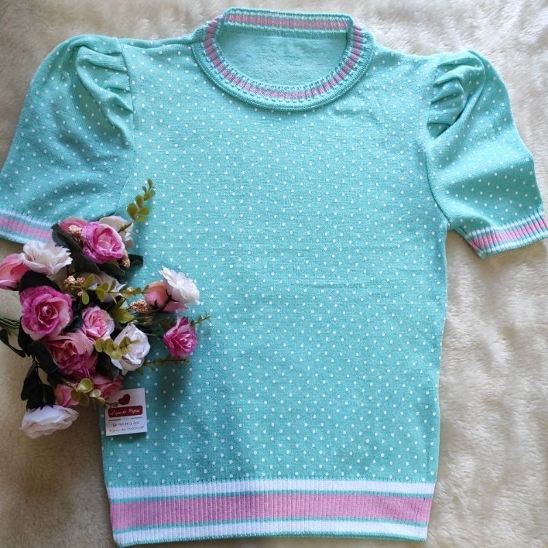 Blusa de Tricot,manga princesa,meia estação, poá, sofisticada,confortável e elegante