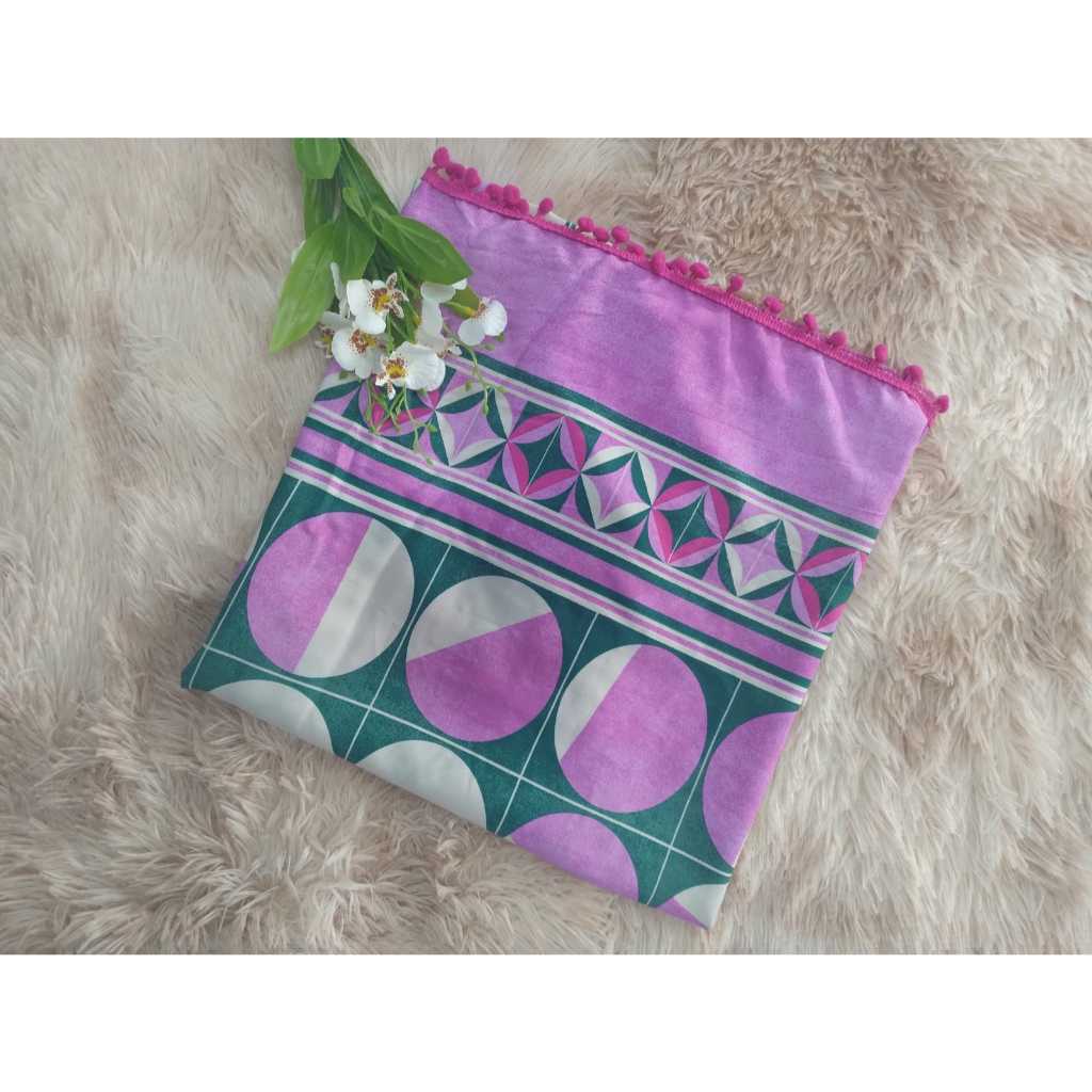 CANGA DE PRAIA PAREÔ COM POMPOM NA BORDA 100% VISCOSE.