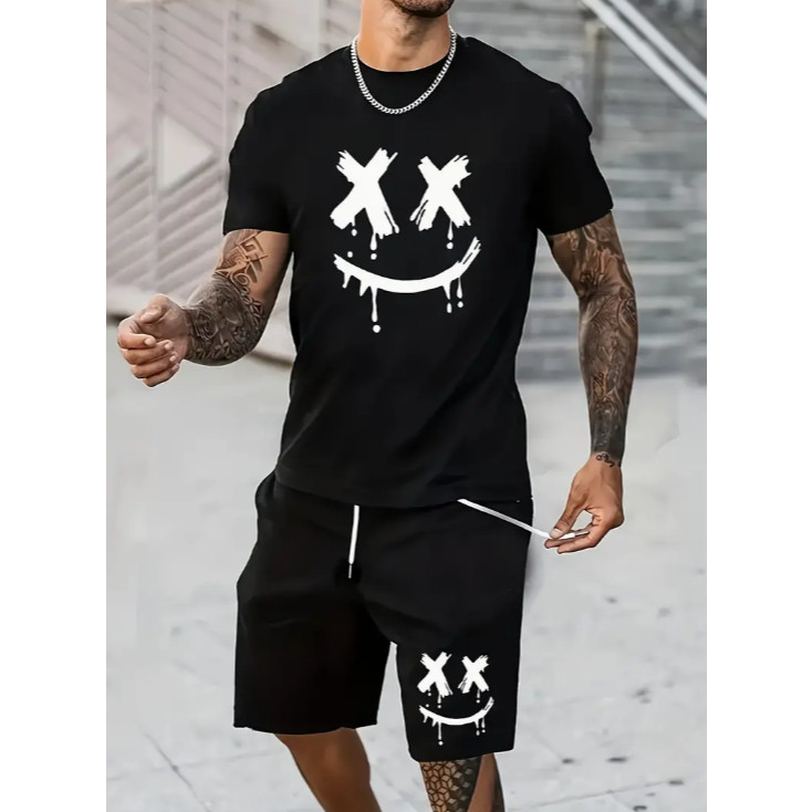 Conjunto Camisa Oversized Smile + Bermuda Tactel Masculino Sorriso Gráfico
