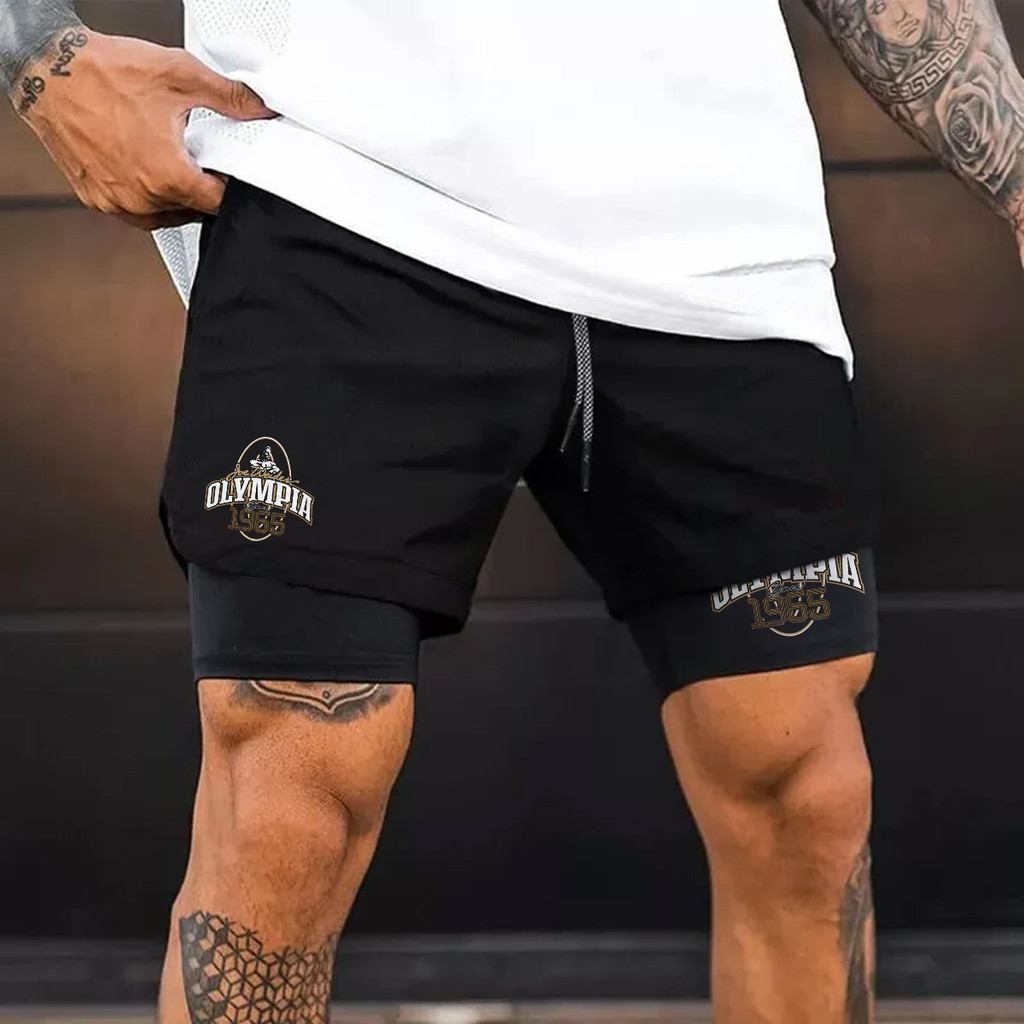 Short 2 em 1 Olympia com Proteção UV e Compressão Bermuda para Academia e Corrida