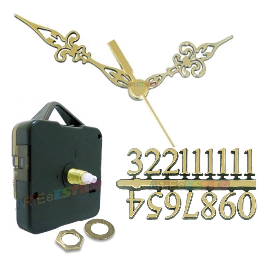 1 Máquina De Relogio + Ponteiros dourados ou prateados + Números Arábicos Prata ou Dourado parede