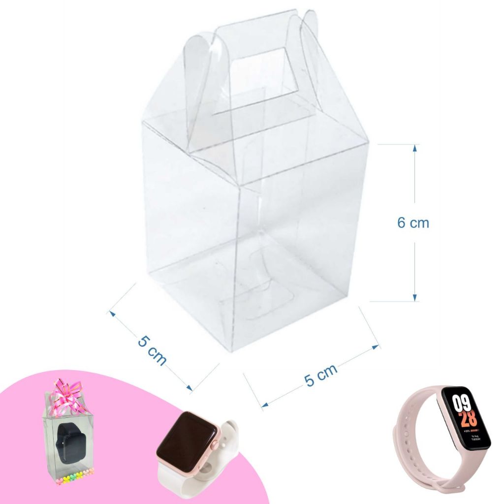 40 Caixa Maletinha 5x5x6 transparente p/ Doce Lembrancinha 2 Macarons trufas para Relogio digital