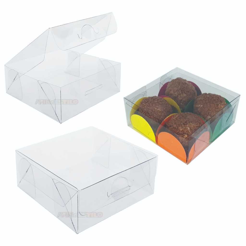 40 Caixas de Acetato toda Transparente 7x7x4 caixinha para 4 docinhos brigadeiro gourmet 4x7x7