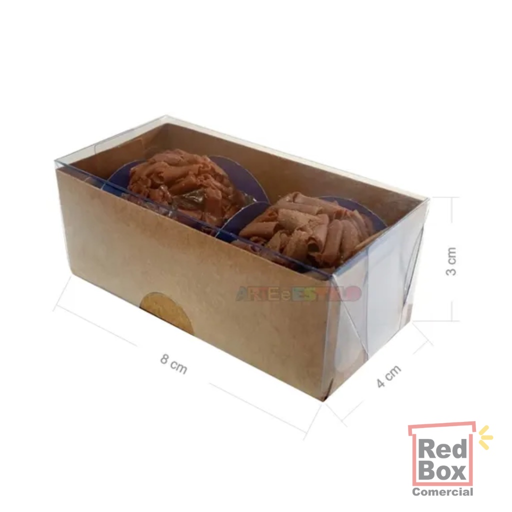 50 Caixas 8x4x3 Cm Para 2 Brigadeiros Doces Gourmet Docinhos Branco, Kraft ou Transparente