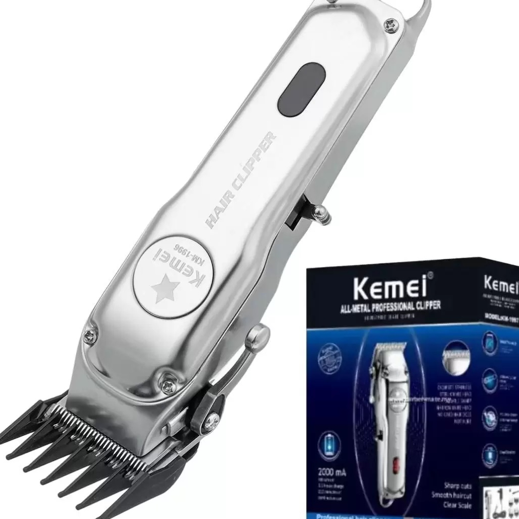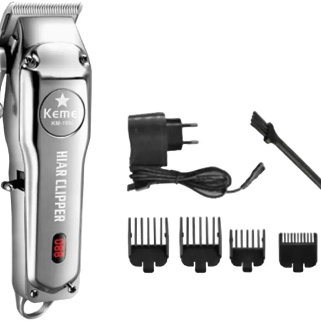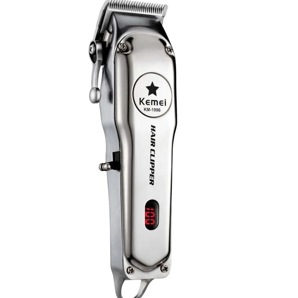 Máquina De Cortar Cabelo em Metal Cromado Profissional Kemei Km-1996