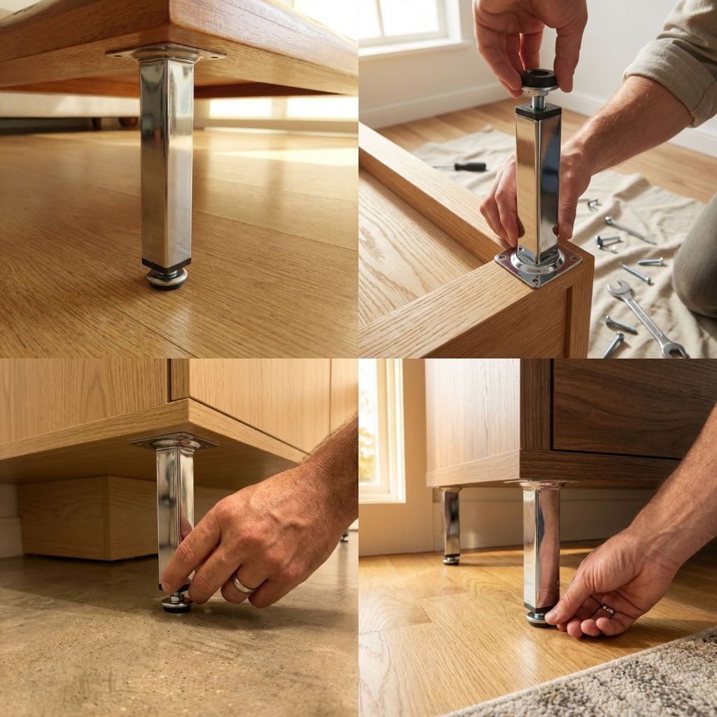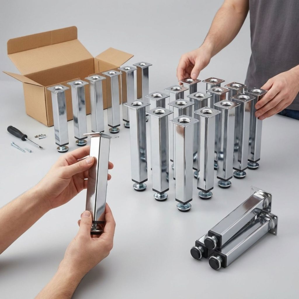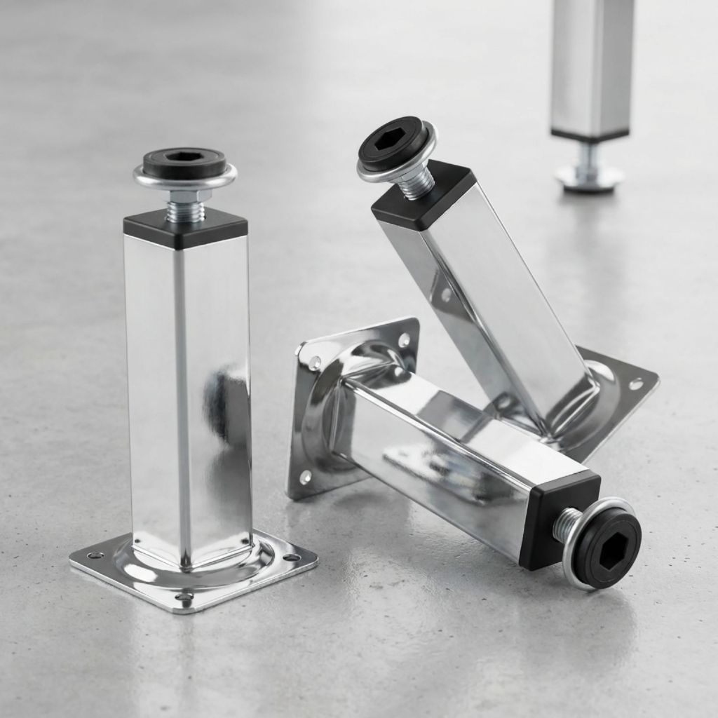 KIT 4 Pés Para Móveis 6cm, 8cm, 10cm, 12cm, 15cm, 20cm Regulável Quadrado Cromado