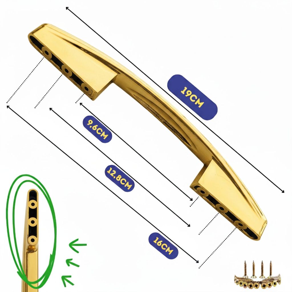 Kit 6 Puxadores para Armário 3 Furações 96mm 128mm 160 mm - Dourado