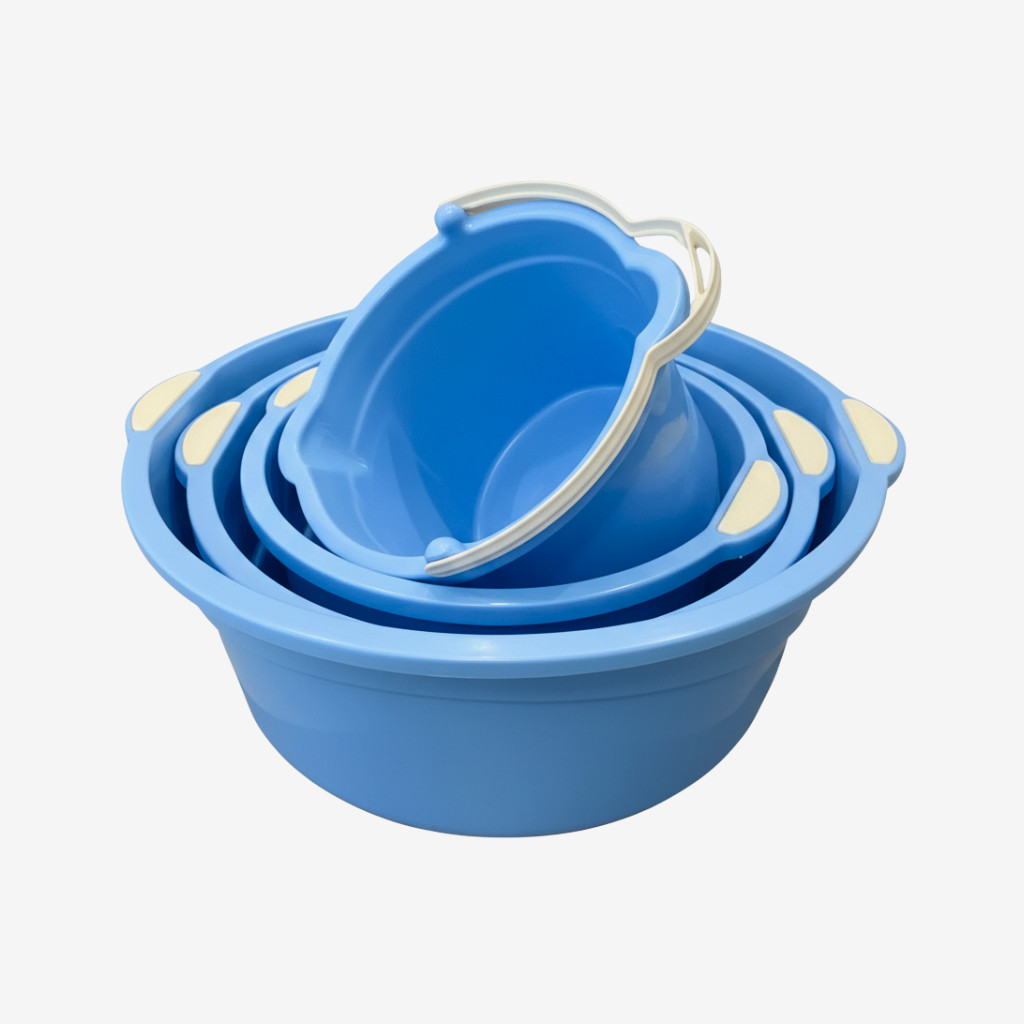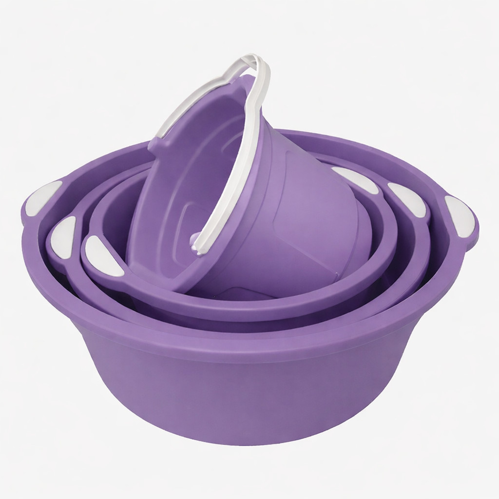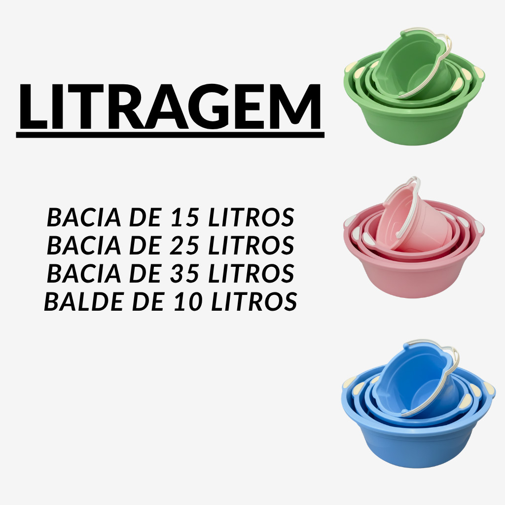 Kit 3 Bacias Plásticas Grandes E Balde Multiuso Para Limpeza Lavanderia Cozinha