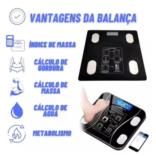 Balança Corporal Bioimpedância Profissional Bluetooth 180KG