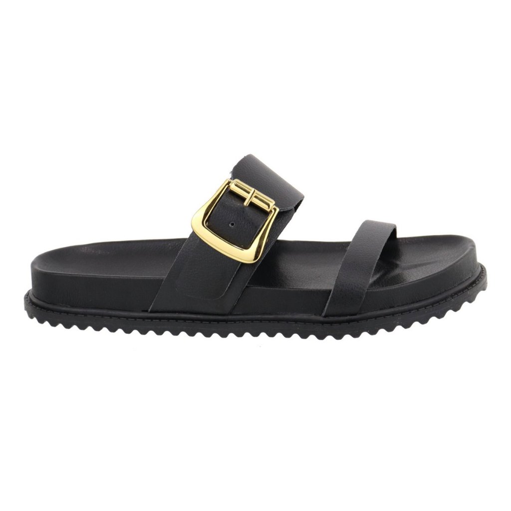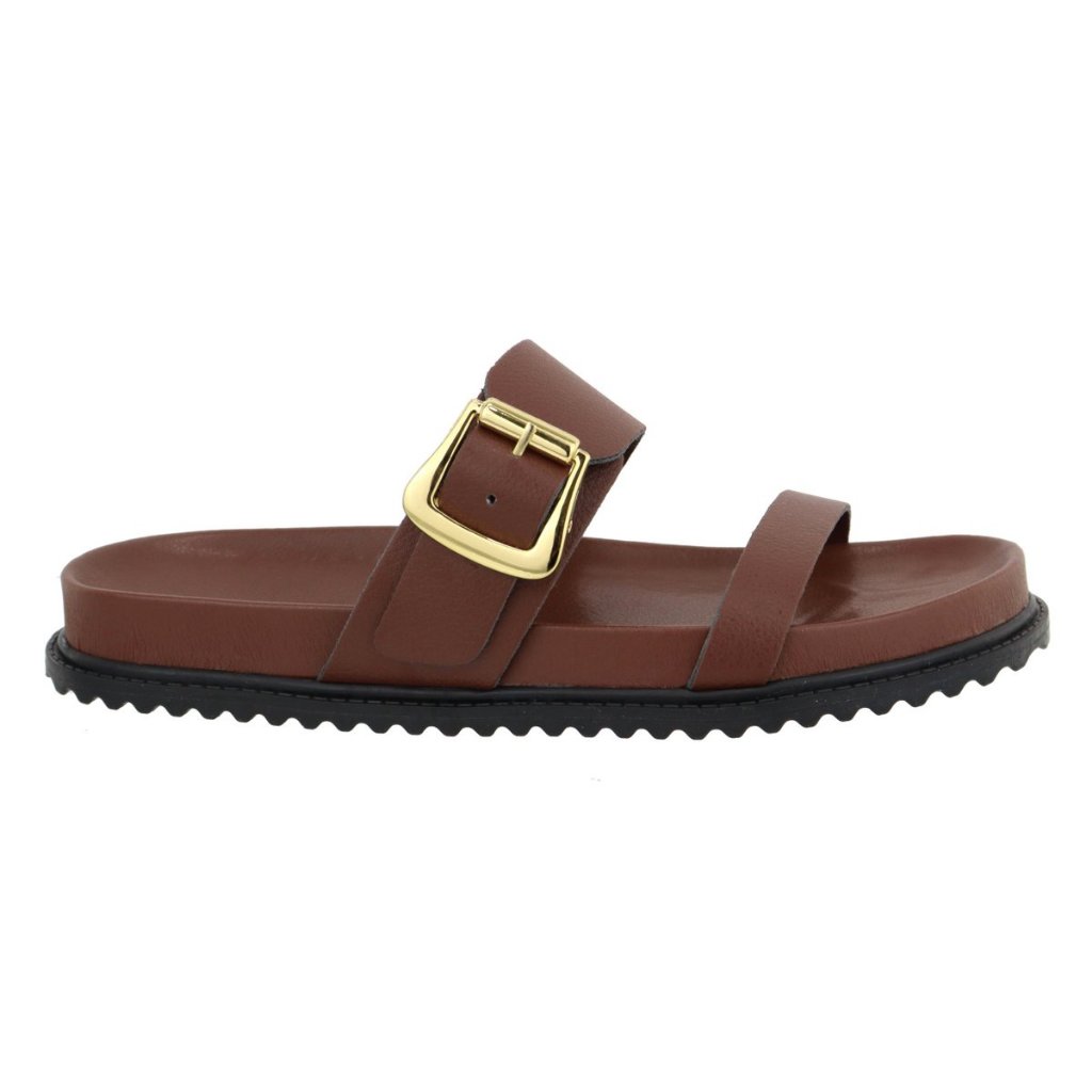Papete Rasteira Feminina Com Fivela Dourada Lançamento Oferta