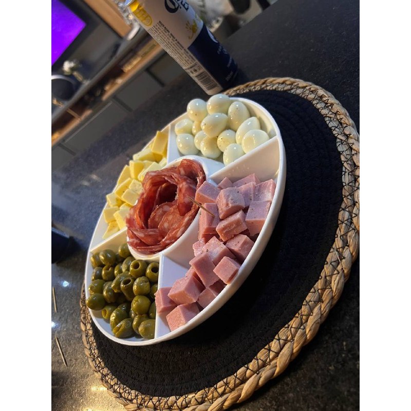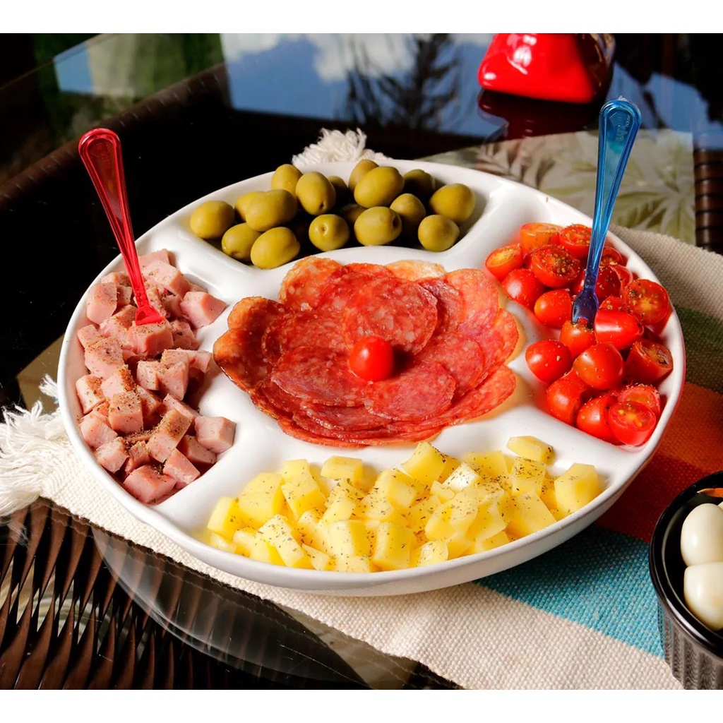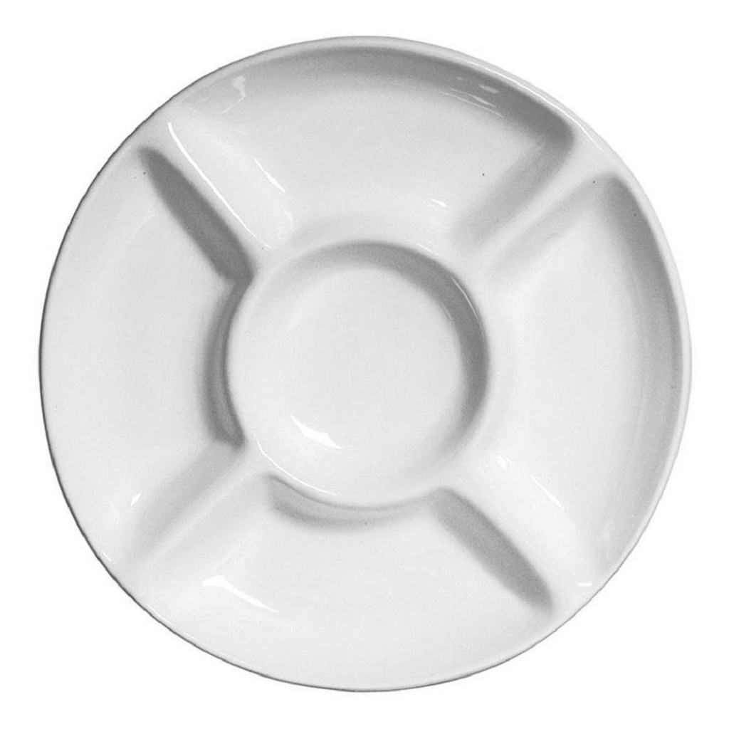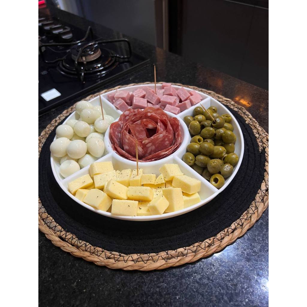 Prato para Servir Petiscos Redondo Petisqueira com 5 Divisórias Frios Queijos Amendoim