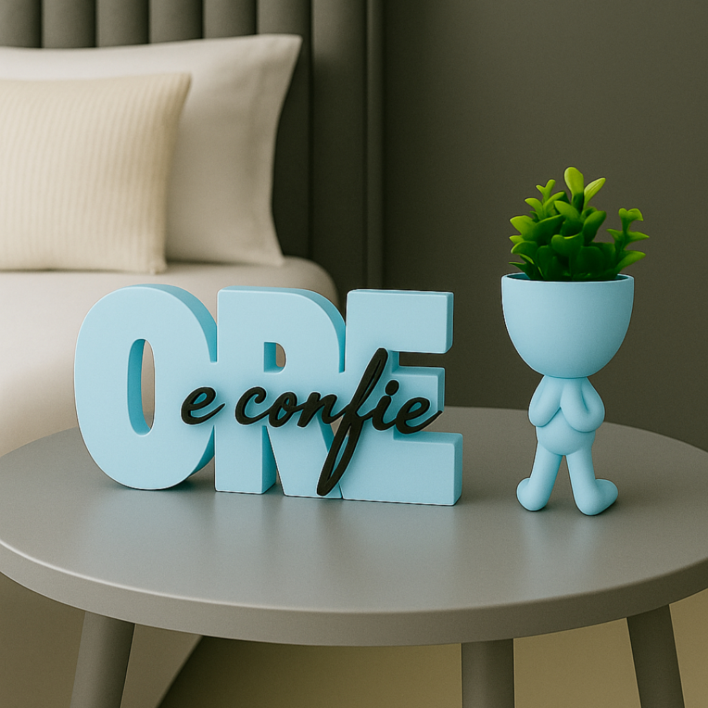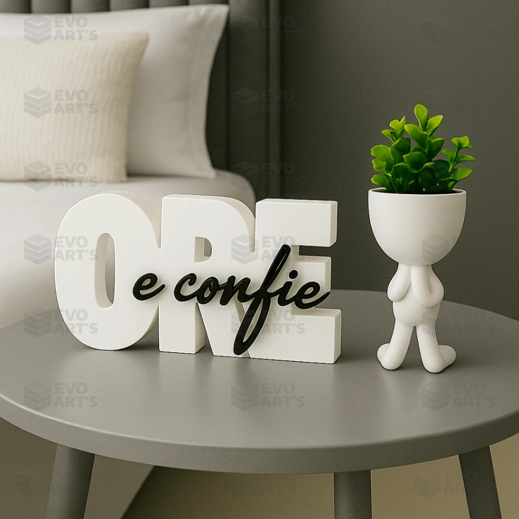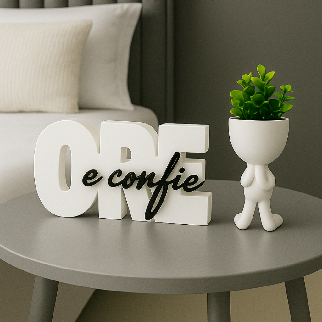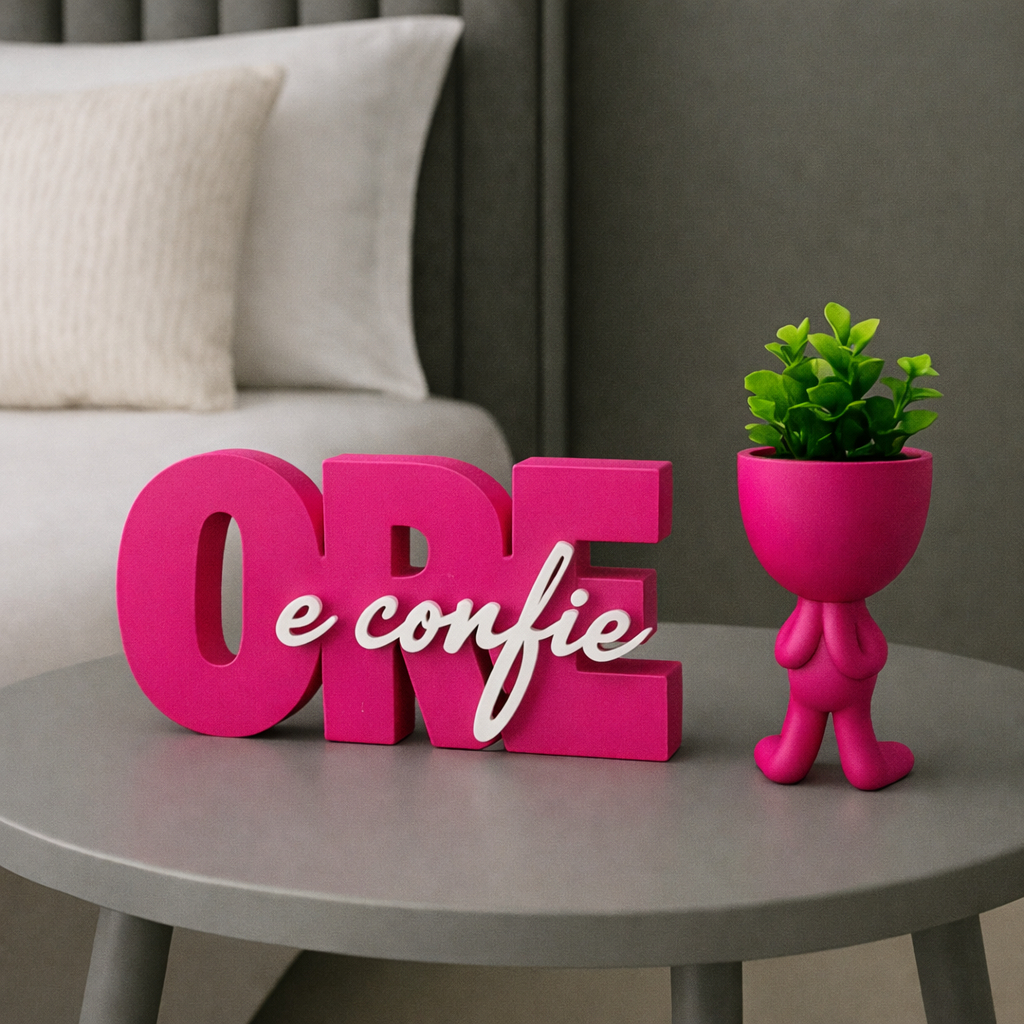 Letreiro decorativo ORE E CONFIE + vaso bob , biblico , decoração escritório, quarto ou cantinho de oração