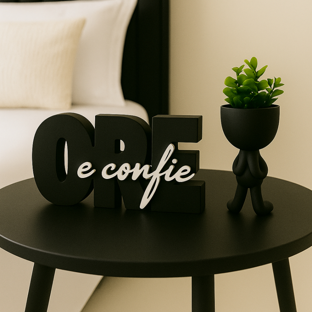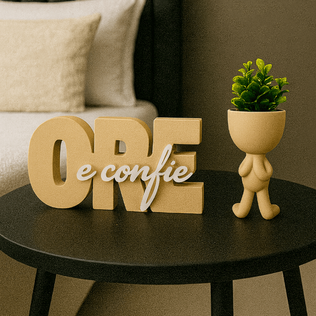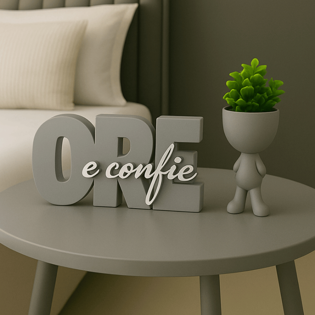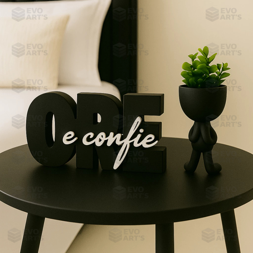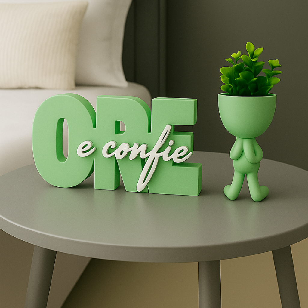 Letreiro decorativo ORE E CONFIE + vaso bob , biblico , decoração escritório, quarto ou cantinho de oração