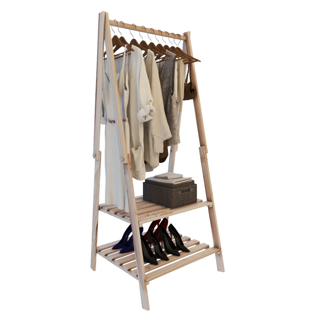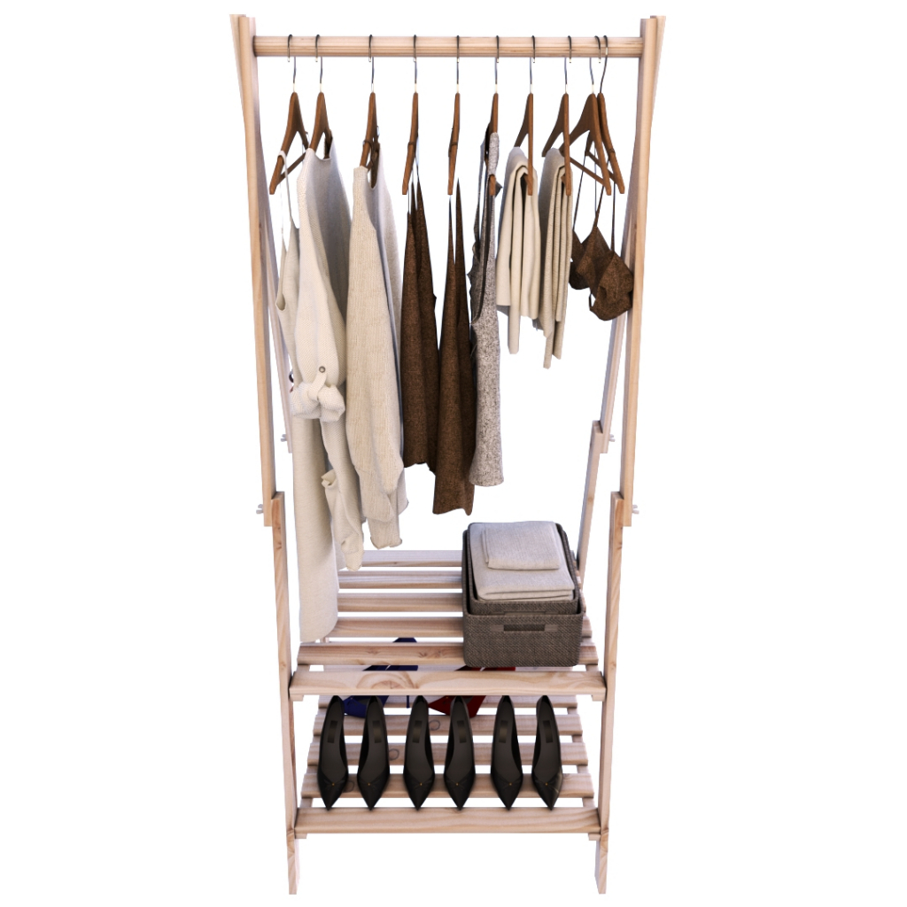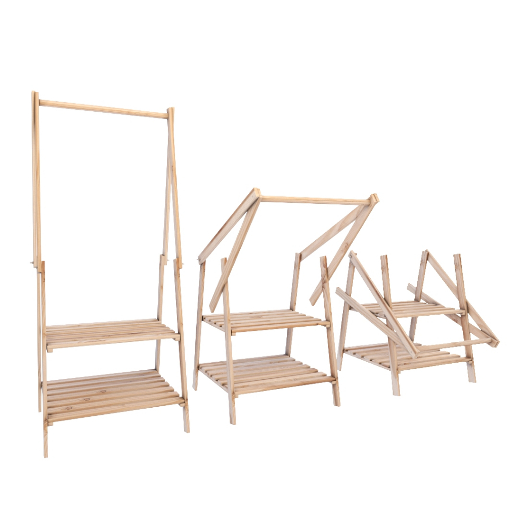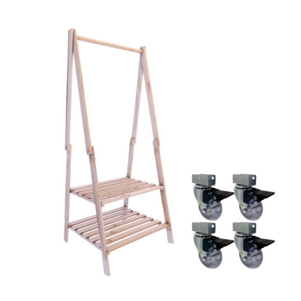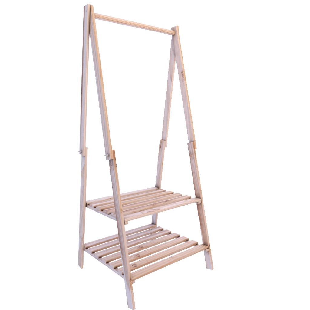 Arara Dupla Prateleira Industrial Madeira Organizadora Expositor Arara Estante Aramados Cabideiro