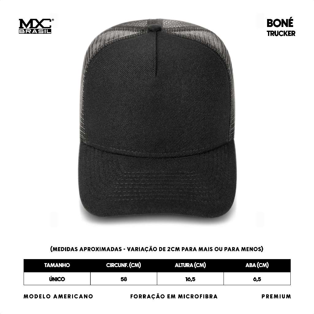 Boné Aba Curva Masculino Trucker Liso Telinha Redinha MXC BRASIL