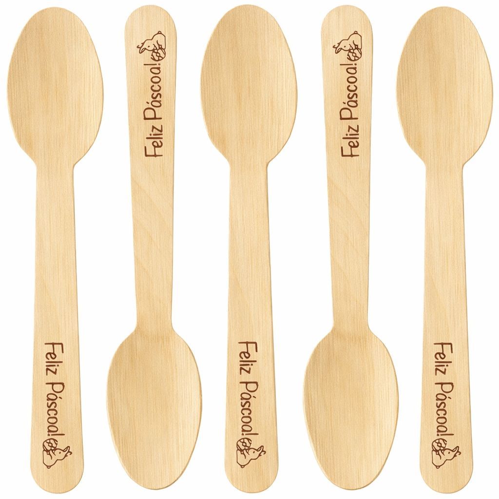Colher Refeição Descartável De Madeira 100 Unidades