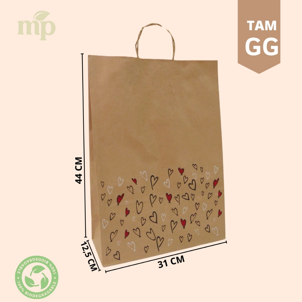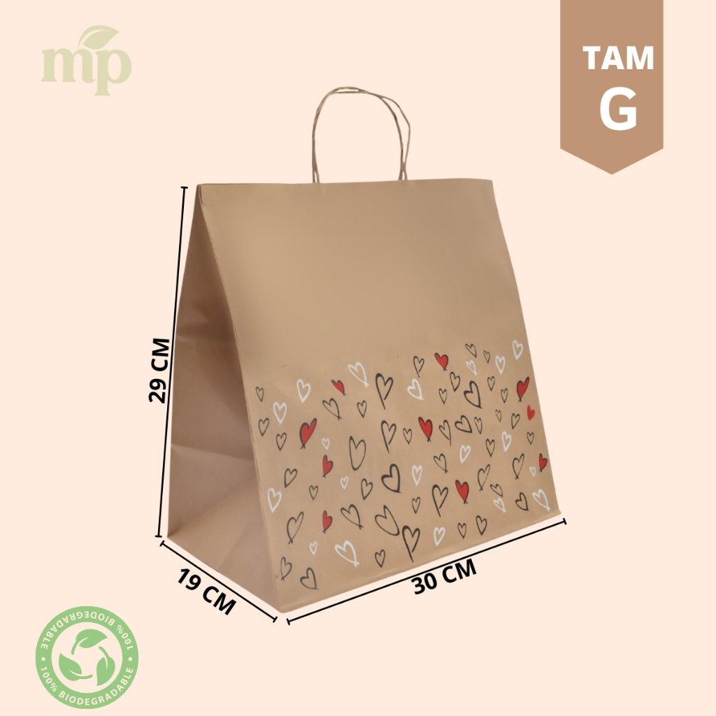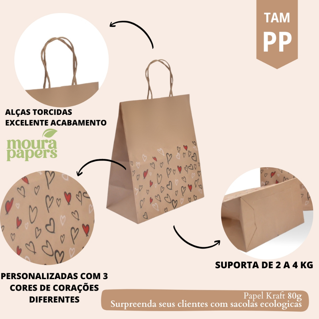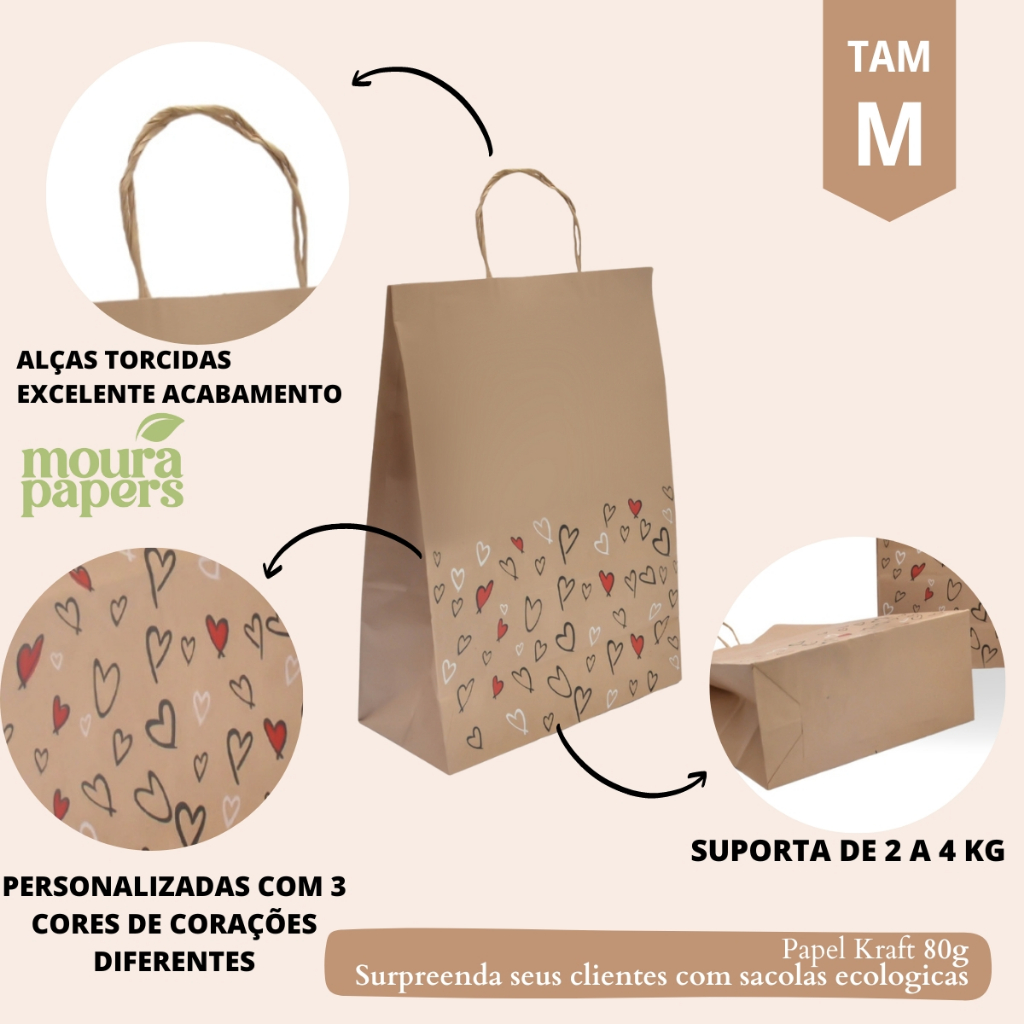 Sacola Kraft Coração (COLORIDOS) - 50 Unidades