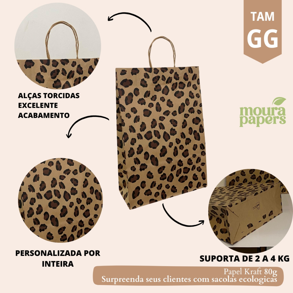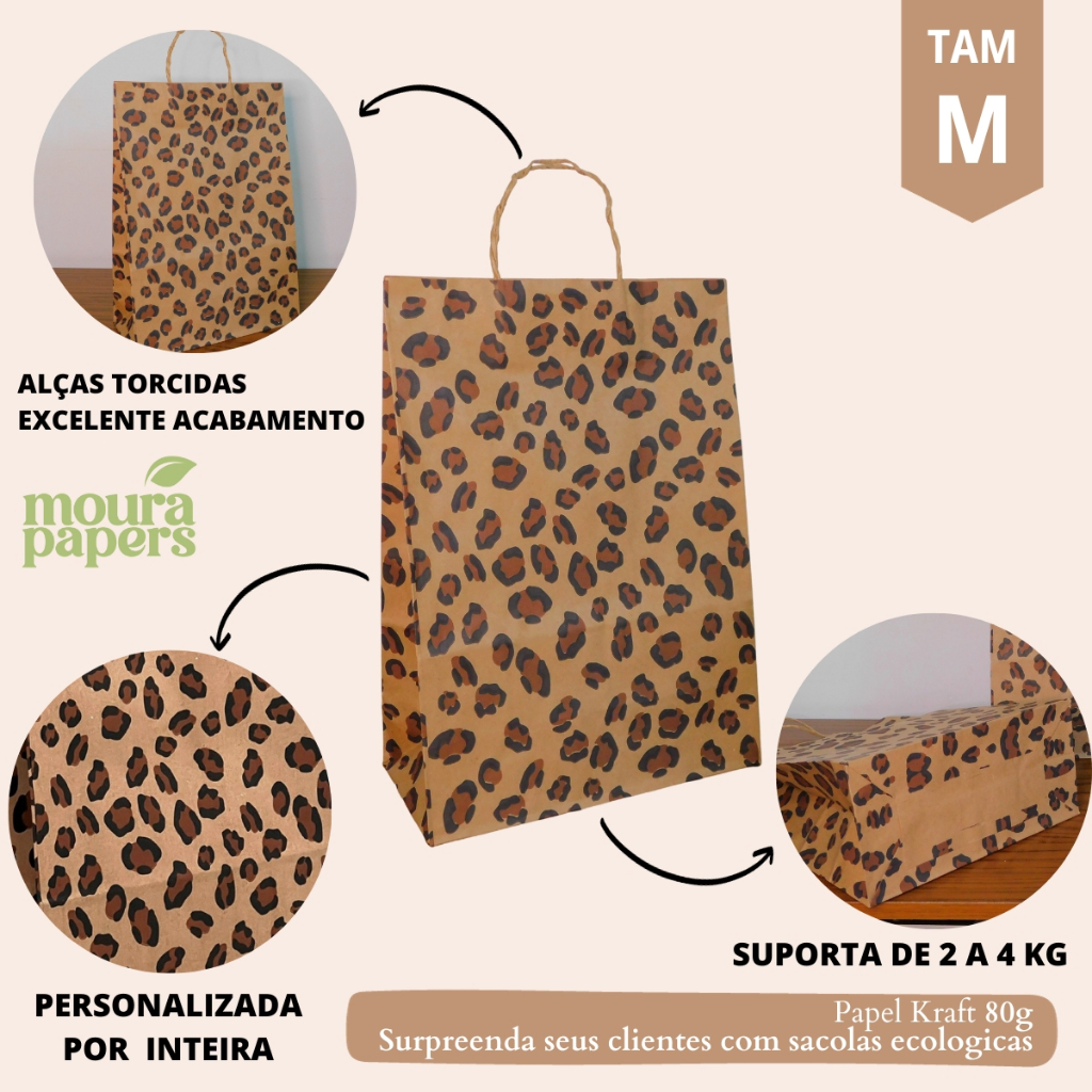 Sacola Kraft Onça Papel 50 unidades